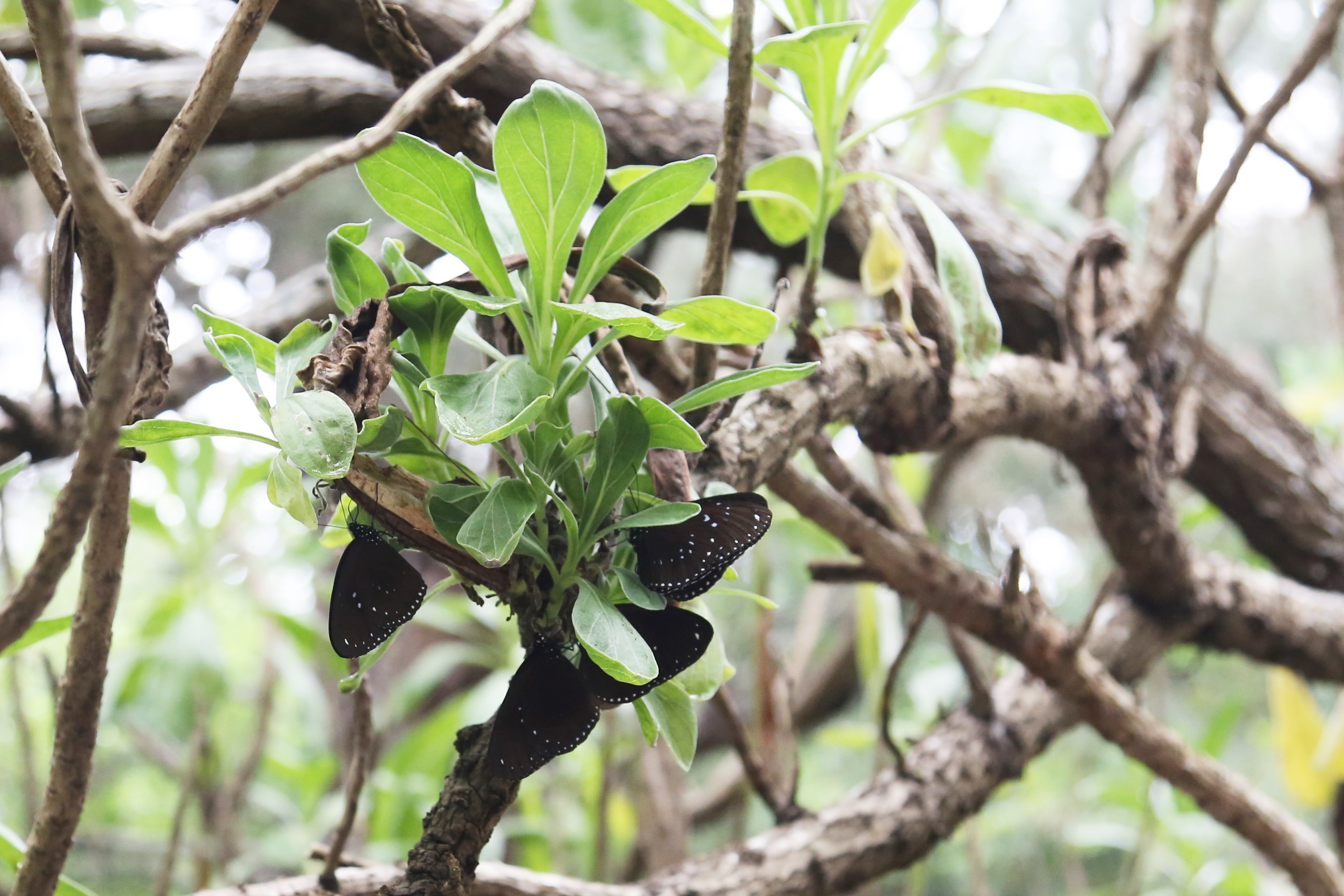 苗栗竹南濱海第1311號保安林自2004年被通報發現大量斯氏紫斑蝶蛹殼後,成為第一個被證實的春季繁殖熱點。此處是孕育斯氏紫斑蝶後代的搖籃地,也是林務局近年推動國土生態綠網計畫中,指認為西海岸生態綠網北段蝶類、專一食草與蜜源等指標物種的重要棲地。今年紫斑蝶遷徙狀況與期程雖不如往常,未見大規模北返竹南跡象;但新竹林區管理處為持續迎接準備北返的紫斑蝶,減少紫斑蝶繁殖期的人為干擾,保留充足食草與蜜源,特與苗栗縣竹南鎮公所協調合作,推動三森步道(長青之森、親子之森、假日之森簡稱三森)4月至6月不除草行動,透由跨機關合作達踐行友善生態環境棲地營造目標。 每年清明節前後,台灣的天空就會出現一條壯觀的蝶河,這是一群身穿黑衣紫衫的紫斑蝶,代代遷徙的盛況景象。原來台灣的紫斑蝶一年會有三次大規模季節性遷徙,每年9月下旬吹起的東北季風會將牠們由北方帶往南方溫暖的山谷越冬,來年溫暖的南風吹進紫蝶幽谷宣告越冬結束,又將牠們往北送,紫斑蝶就在往北方的路上同時找尋紫斑蝶寶寶的寄主植物產卵,之後生命即結束。而新一代剛羽化的紫斑蝶會在每年5至7月進行第二次遷移。 台灣有4 種紫斑蝶,竹南濱海保安林棲地與越冬地不同,紫斑蝶組成以斯氏紫斑蝶為主,攀附在保安林木上生長的「羊角藤」是斯氏紫斑蝶幼蟲的專一食草,除食草外,林內下層植被是蜜源的主要來源,而成為斯氏紫斑蝶二次遷移前的重要棲息地,並使生態得以連年延續不息。然究竟除草與紫斑蝶有什麼關聯?農委會特有生物研究保育中心自106年起即開始進行為期4年的竹南濱海保安林蝶類調查,歷年研究報告指出,除草對蝶類是高度干擾行為,頻繁除草導致步道與林木間下層的食草及蜜源減少,已明顯影響紫斑蝶行為及群聚分布,並建議應減少繁殖季人為干擾、避免大面積除草,以保留食草及成蝶蜜源植物。 為此,新竹林區管理處以特生中心調查研究資料為素材,結合台灣紫斑蝶生態保育協會,與特生中心、竹南鎮公所、在地社區及當地民眾進行意見溝通,尋求環境經營管理及棲地復育營造的可行方案,今年首度促成推動三森步道 4月至6月不除草行動,以提供滿足紫斑蝶需求環境,讓這些遠道而來的嬌客在乘風離開前,有一個安心繁衍的驛站。新竹林區管理處也將於假日之森、親子之森及長青之森三個公園主要出入口設置告示牌週知民眾,透過教育宣導方式,提升民眾認同及強化生態棲地保育之意識。此外,也持續與台灣紫斑蝶生態保育協會合作,於109年擇定13公頃保安林地逐步辦理紫斑蝶棲地營造工作,除就現況食草及蜜源植物進行資源盤點外,也進行小花蔓澤蘭、槭葉牽牛等外來植物移除,及在孔隙地進行食草羊角藤與蜜源栽植工作;並落實在地社區實地參與原則,結合塭內與海口社區共同參與辦理。期透過跨機關、友善環境棲地營造以及在地社區參與,讓保安林得以發揮串連綠網的功能,也透過具體行動的展現,以及環境教育宣導方式,永續營造對紫斑蝶更友善的環境。