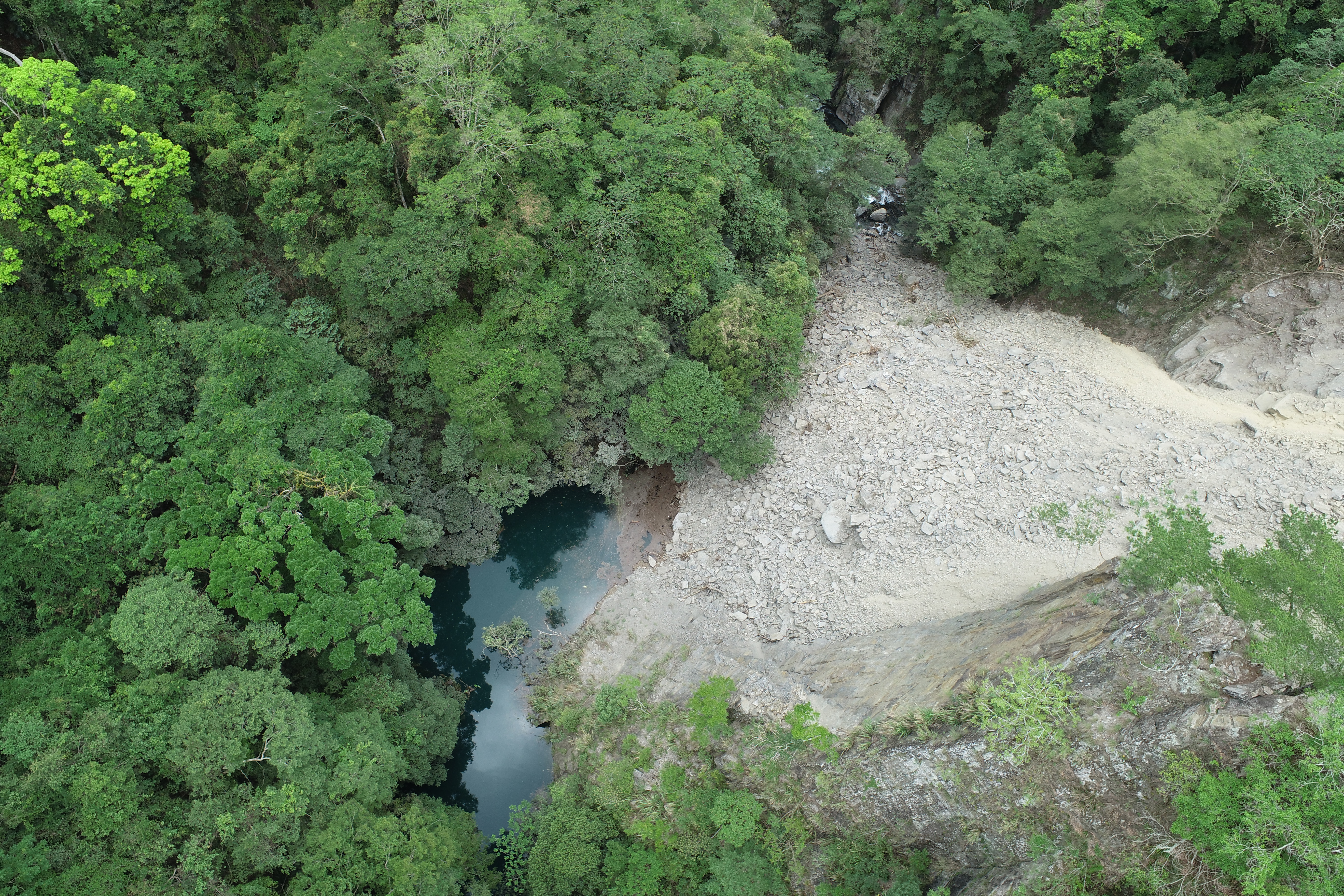 桃園市復興區在台7線50公里處大漢橋下方大曼溪上游發生崩塌地,崩塌土石堆積阻斷大曼溪形成堰塞湖,隨時有潰決可能,請民眾勿進入大曼溪從事水域活動以免發生危險。 新竹林區管理處指出,堰塞湖位於大漢橋下方大曼溪上游約100公尺處,經於110年6月19日調查結果,崩塌土石堆積的天然壩體高約20公尺,壩體後方蓄水面積0.25公頃,最大水深約12公尺,蓄水水體粗估為1萬5,000立方公尺約為7個標準游泳池水量,規模不大,對於下游部落、公共設施等不會造成危害。 該處進一步指出,該堰塞湖雖不致於釀災,但因崩塌土體較為鬆散,隨時會有潰決情形,故請民眾勿進入溪流周遭從事水域相關活動,以免發生危險。