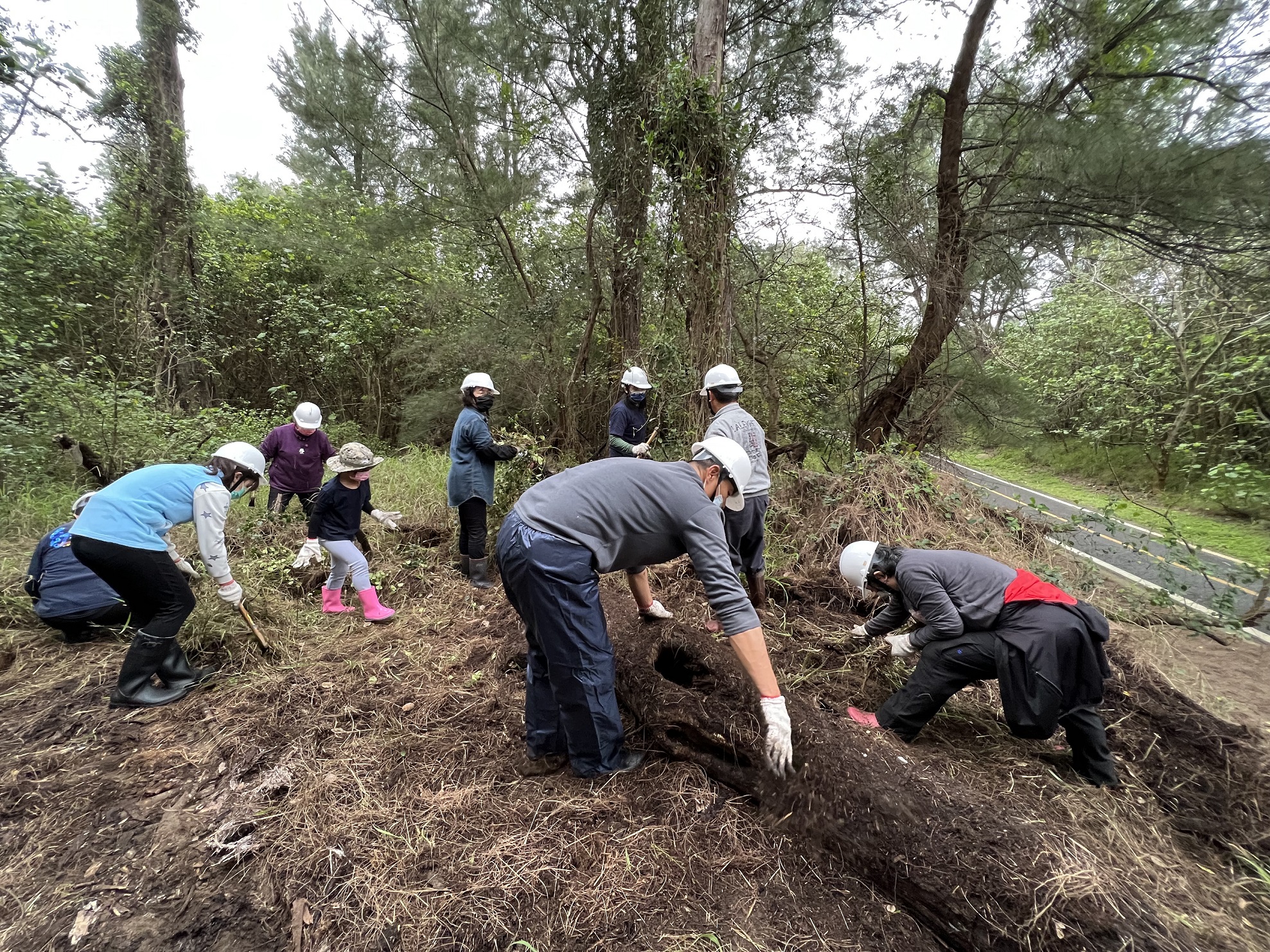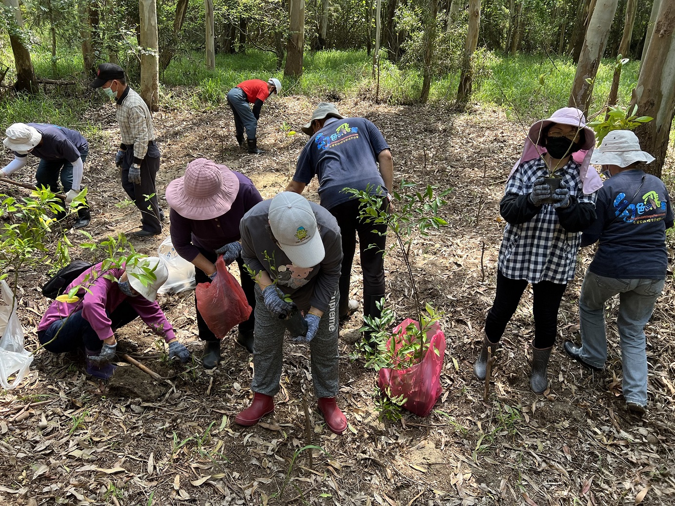為營造友善紫斑蝶的生態環境,新竹林管處與台灣紫斑生態保育協會合作,結合在地竹南鎮塭內社區發展協會及多位保育志工於3月19、20日在竹南濱海編號第1311保安林下的「三森步道」沿線種下近千棵的蜜源植物,為遷徙北返竹南繁殖的紫斑蝶及其他蝶種營造一個更友善的棲地環境。 新竹林管處處長夏榮生表示,竹南濱海編號第1311保安林是國內已知斯氏紫斑蝶最大的繁殖地,去(110)年開始與台灣紫斑生態保育協會合作並結合在地社區,在長青之森、親子之森及假日之森沿自行車道兩側各15公尺的13公頃保安林地內進行除蔓、外來種植物移除及自然資源盤點調查工作,共記錄到3,685株斯氏紫斑蝶幼蟲的食草-羊角藤。夏榮生說,調查的結果比我們預期的數量還多,既然食草充足為什麼蝴蝶生態不如從前?這個問題在與專家學者會勘討論後,推測蜜源不足可能是其一主因。因此,今年延續去年的調查範圍,在不影響保安林既有防風功能下,利用林下孔隙地進行移除外來種植物大黍,將底層枯枝落葉層鬆整等微棲地整理後,種植白水木、厚葉石斑木、橢圓葉赤楠、山黃梔、台灣香檬等近千株蜜源植物,提供來此繁衍的紫斑蝶有豐富蜜源。 台灣紫斑蝶生態保育協會表示,如果沒有公部門的投入,光是民間力量很難推動此具體且階段性的計畫,感謝新竹林管處的大力支持,除了去年的除蔓讓羊角藤有更好的生長空間外,也協調苗栗縣竹南鎮公園路燈管理所在紫斑蝶遷徙繁殖期間4至6月不除草,留下更多蜜源供紫斑蝶使用。今年更延續去年棲地營造工作,擇定約20處孔隙地栽植原生蜜源植物,提供蝴蝶一個友善空間。 新竹林區管理處表示,今年再度與台灣紫斑蝶生態保育協會合作,也邀請保安林周邊的社區發展協會、苗栗縣垃圾焚化廠共同參與棲地營造及協助植栽養護澆水工作,並號召對蝴蝶生態有興趣的民眾一起加入除蔓、種樹的行列,透過實地參與了解蝴蝶對自然生態的重要、蝴蝶食草與蜜源植物辨識以及原生植物種植、照顧等實務技術,引領在地社區與社會大眾認知森林生態的多樣性,維護紫斑蝶重要生態棲地。
