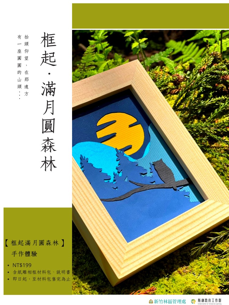 滿月圓國家森林遊樂區有著多樣且豐富的自然生態,天然闊葉林間矗立著過去伐木時期種植的柳杉,走在園區的步道上能與生活其中的野生動物不期而遇。滿月圓遊客中心邀請您造訪滿月圓,用雙眼觀察美麗的自然景致,也親手將美好的風景刻畫下來,帶一幅滿月圓森林回家。 滿月圓遊客中心自5月16日起推出【框起滿月圓森林】現場活動,提供遊客不同的體驗活動遊程,透過紙雕藝術欣賞滿月圓多樣性的生態環境,將滿月圓的山林層層堆疊裝入相框,為旅程留下完美記憶!現場購買材料包即可現場製作,不限製作人數,一般大眾均可報名,唯材料包數量有限,售完活動即止,除休館日外,平假日均可現場報名參加。 「滿月圓國家森林遊樂區」陸續推出學校戶外教學課程、季節性主題活動及成人環境體驗活動等,相關訊息可追蹤「滿月圓國家森林遊樂區」臉書粉絲專頁,或上「台灣山林悠遊網」查詢。洽詢專線(02)2672-0542滿月圓國家森林遊樂區遊客服務中心(08:30-17:00,週二休館)。 另外提醒您,依據中央流行疫情指揮中心發布之指引,入園遊客須量測體溫,額溫達攝氏37.5度以上者,不得入園;遊客須佩戴口罩,空曠處活動、可保持安全距離處可不佩戴口罩,惟於無法維持安全社交距離時,或於室內場館時仍應全程佩戴口罩。