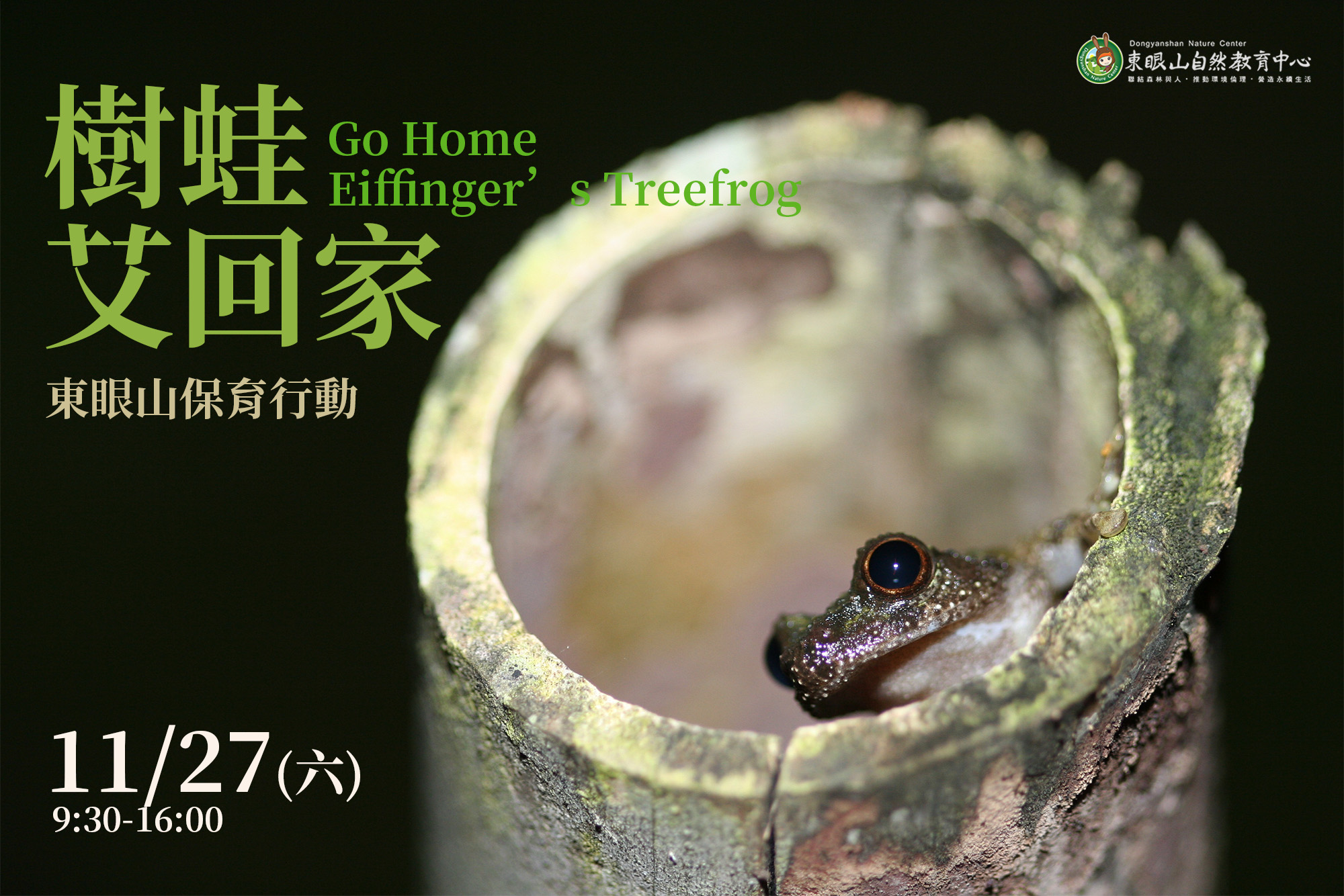 但隨著園區內原有竹桿自然崩裂,越來越看不到艾氏樹蛙繁衍。為增加及提供艾氏樹蛙舒服友善的棲地及居住空間,東眼山自然教育中心環教師們將帶領民眾,製作樹蛙們的育巢小窩擺放至適當的環境棲地,民眾能藉由本次的保育行動,了解到樹蛙們的生態棲位與環境保育的重要性。東眼山自然教育中心在活動規劃時,均融入生態學的概念與原則,透過漸進引導的方式讓學員獲得第一手體驗,也讓學員在森林裡的學習更有意義,進而採取行動保護我們的自然生物與生態環境。詳細資訊,請上「東眼山自然教育中心-環境教育/戶外學習」FB 粉絲專頁:https://www.facebook.com/DYSNEC,或有任何疑問,也可撥打 03-3821533#303 洽詢。