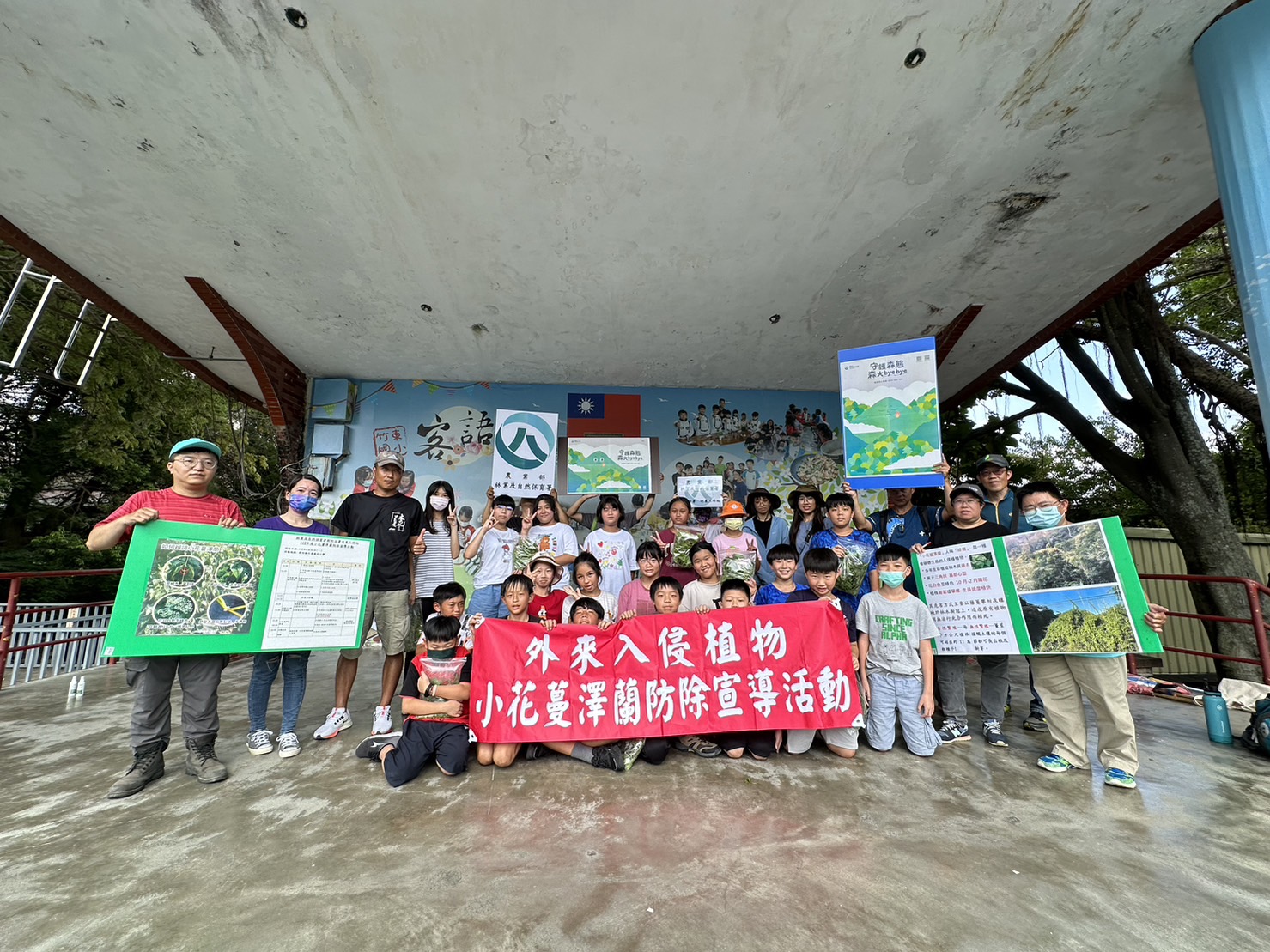 「小花蔓澤蘭」人稱「綠癌」,是名列世界百大外來入侵種,為持續加強移除工作,林業保育署新竹分署竹東工作站結合新竹縣竹東國民小學於9月25日辦理小花蔓澤蘭防治活動,號召學校師生一起投入小花蔓澤蘭防除工作。 小花蔓澤蘭是種繁殖力強、擴散迅速的植物!其危害方式主要以藤蔓攀附及纏繞於林木樹冠上,造成原有植物因無法行光合作用而枯死。每年的10月到隔年2月是小花蔓澤蘭的開花結果期,所以本次活動選在開花前防治適期辦理,由新竹縣竹東國民小學與林業保育署新竹分署竹東工作站人員合計45人,通力剷除校園內操場旁及校內歷史建築吳天佑紀念碑周圍小花蔓澤蘭,合計20公斤。 本次活動除了向學生解說小花蔓澤蘭的生態習性及校內原生植物外,並由小花蔓澤蘭纏繞植生的實際情況生動解說,讓參與學生充分了解小花蔓澤蘭危害的嚴重性,共同將學校內操場旁及歷史建築吳天佑紀念碑周圍小花蔓澤蘭除掉,由6年級學生以實際行動打擊綠癌保護歷史建物,賦予整個除蔓行動更具豐富意義,亦將除蔓行動向下紮根落實環境教育! 林業保育署新竹分署為加速防治效果,自即日起全年度皆可受理小花蔓澤蘭的收購作業,一般民眾及內政部登記有案之社區發展協會皆可參與。新竹分署提醒民眾,小花蔓澤蘭應連根拔除,並將所有拔除的的莖葉妥善裝袋,才能避免種子或莖葉再次擴散繁衍!民眾可將拔除的小花蔓澤蘭植體自備容器或綑綁裝妥後,於每周二、四下午2時至4時止,載運到下列地點辦理秤重及收購,收購價格每公斤5元,未足1公斤者不予計價。 林業保育署新竹分署收購位址如下: (1) 新北市烏來工作站(地址:新北市烏來區烏來里溫泉街86巷20號,聯絡電話02-26617712) (2) 新北市三峽工作站(地址:新北市三峽區中山路14號,聯絡電話02-26711008) (3) 桃園市大溪工作站(地址:桃園市大溪區復興路51號,聯絡電話03-3882038) (4) 新竹縣竹東工作站(地址:新竹縣竹東鎮林森路40號,聯絡電話03-5966296) (5) 苗栗縣大湖工作站(地址:苗栗縣大湖鄉民生路127號,聯絡電話037-991009)