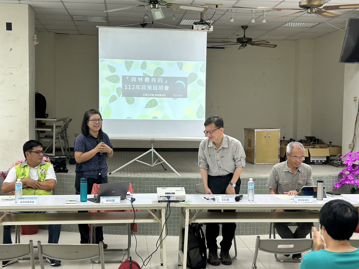 為使新北市三峽區的林農多元化且永續的經營林地,農業部林業及自然保育署新竹分署接續由該分署三峽工作站辦理今(112)年度第4場「與林農有約」林業政策說明會,邀請三峽區林地承租人、在地里長及民眾等近30人於27日在新北市三峽區插角里大有市民活動中心座談,面對面溝通以瞭解林農經營的問題及建議。在會中新竹分署三峽工作站除說明近年來推動的林地管理相關規定外,也以案例方式讓林農了解租地造林興建工寮注意事項、解除林地後續計畫、續辦清理計畫、林下經濟推動等最新林業政策,以利林農永續且多元經營林地並兼顧生計。