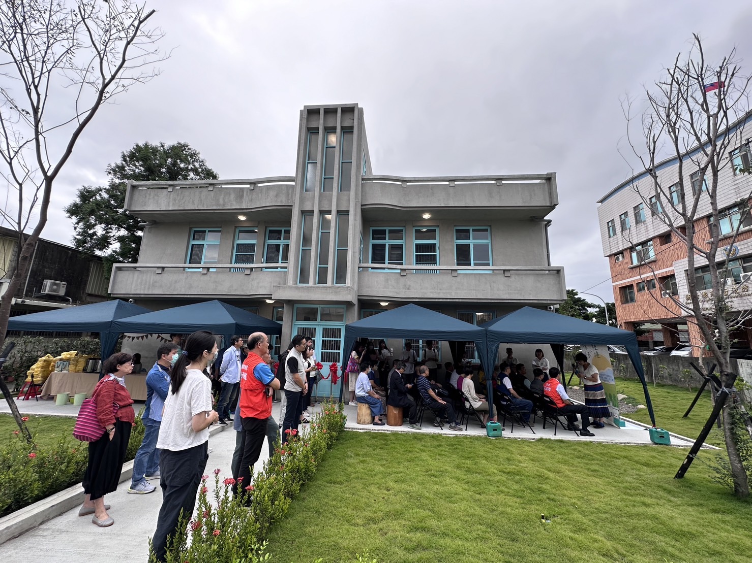 林業保育署竹東宿舍區第一期整修工程歷經兩年時間,已於近日完工修復竹東鎮東林路148巷32號、34號日式木造建築及中正路212號、214號水泥加強磚造兩層建築,在秉持修舊如舊原則下,重生的嶄新空間開幕剪綵,29日由林業保育署新竹分署副分署長劉忠憲、立法委員林思銘辦公室秘書陳華芳、王婉諭辦公室執行長陳瑞榆、新竹縣議員彭余美玲、鄭朝鐘及竹東鎮鎮長郭遠彰、新竹縣政府文化局、國稅局竹東稽徵所等相關機關代表與關心竹東在地發展的林業耆老、地方文史工作者等約60人,一起鬥鬧熱,共同揭幕。