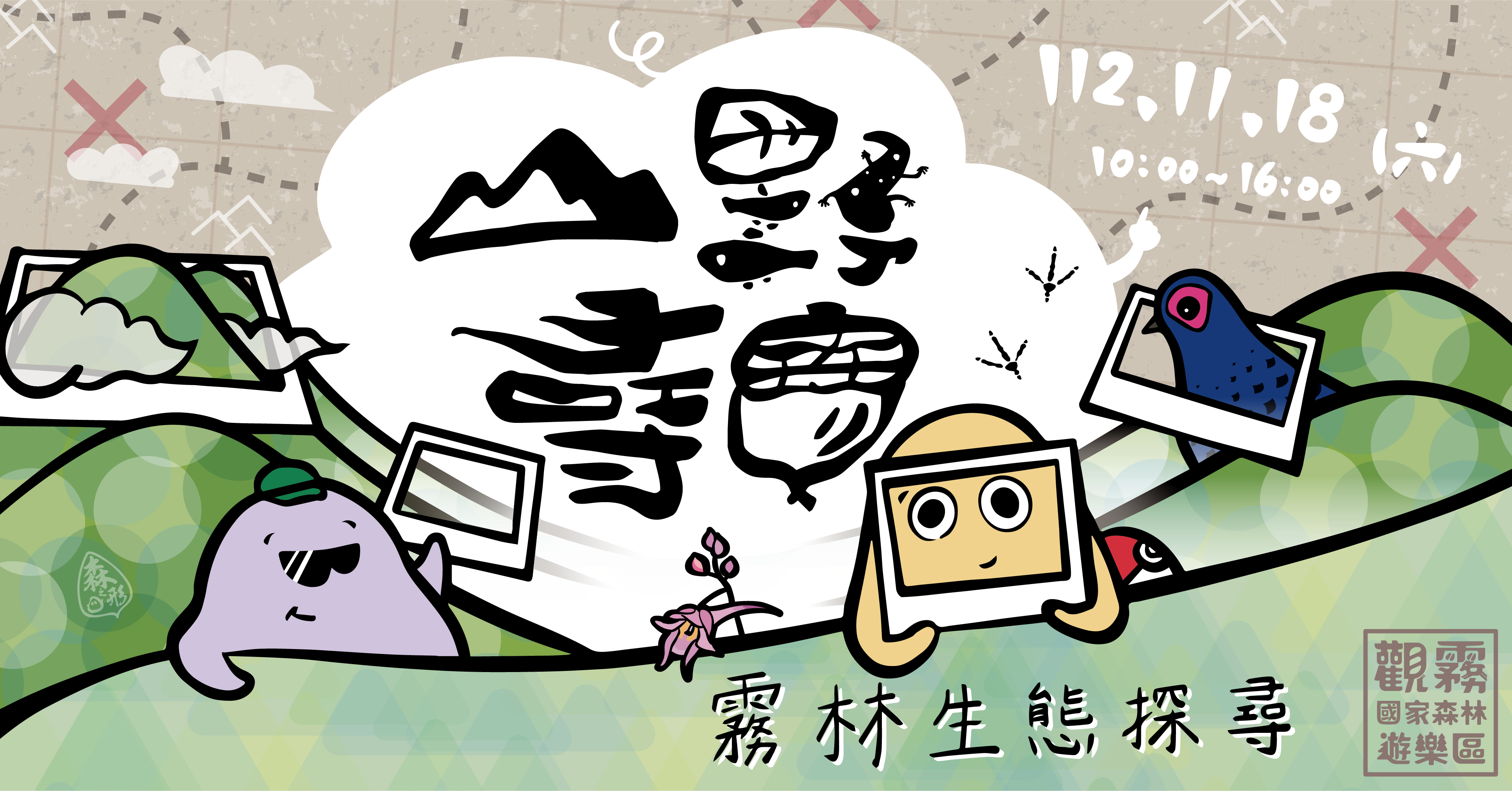 「山野尋寶-霧林生態探尋」主題活動將於11月3日(五)上午8點起開放網路報名,招收國小三年級(含)以上一般民眾。活動名額有限,及早購票可享最低8折優惠,歡迎有興趣的民眾把握機會,報名參加!活動內容、收費方式及報名連結為https://www.accupass.com/go/2023-05-Guanwu,可私訊觀霧國家森林遊樂區臉書粉絲專頁,或於平日上午9點至下午5點電洽0963511973(森之形自然教育團隊)。