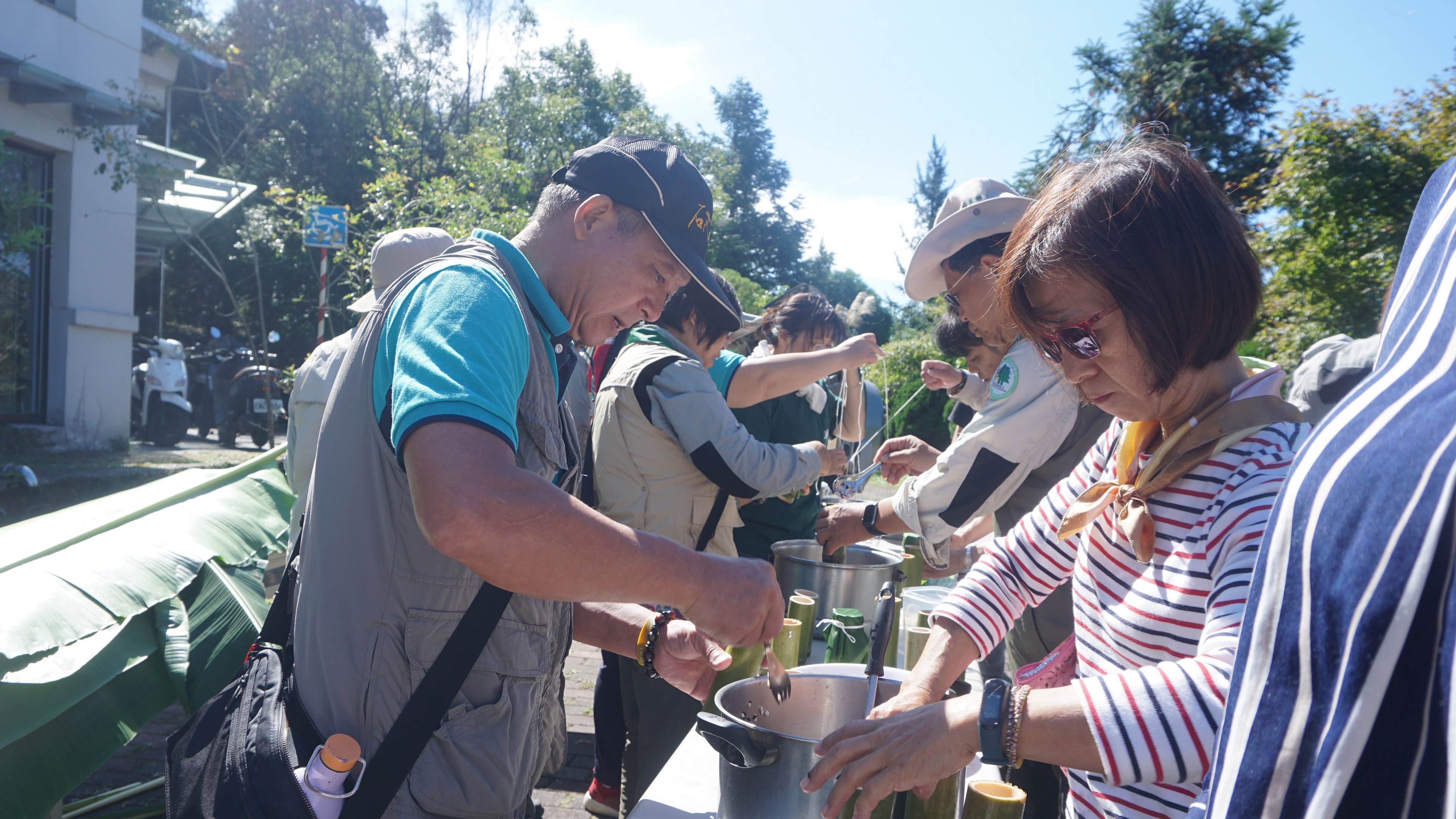 簽約儀式後,日本北海道然別湖自然中心以「視覺」和「聽覺」分享多年來人員專業發展及自然體驗的教學經驗,東眼山自然教育中心「味覺」-林下原「食」活動透過製作竹食器和體驗原民竹筒飯美食,呈現臺灣特有的泰雅族文化,傳達在地原民與山林相處的文化精神,加深大家對原民文化與「食當令、吃當地」的連結。