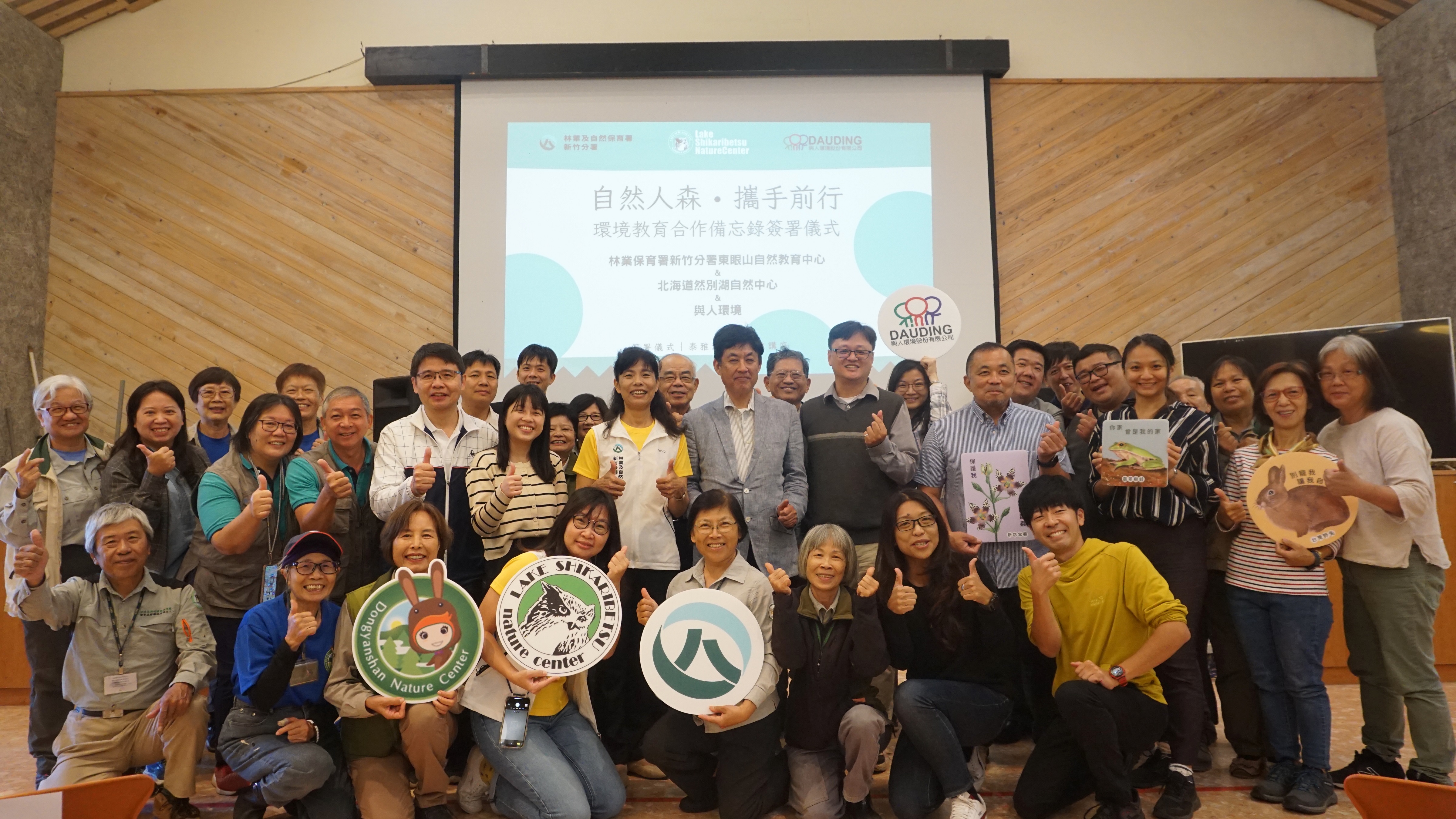 為拓展環境教育,林業及自然保育署新竹分署東眼山自然教育中心今(7)日與日本北海道然別湖自然中心,攜手簽署「合作協議」備忘錄,促進台日雙方以拓展夥伴關係、人才及教學資源交流、共同行銷方式,緊密合作將「快樂學習自然體驗」的理念拓展國際。簽署會場也有來自淡水河流域聯盟,北、桃、竹等在地環境教育推動團隊夥伴共同參與見證。