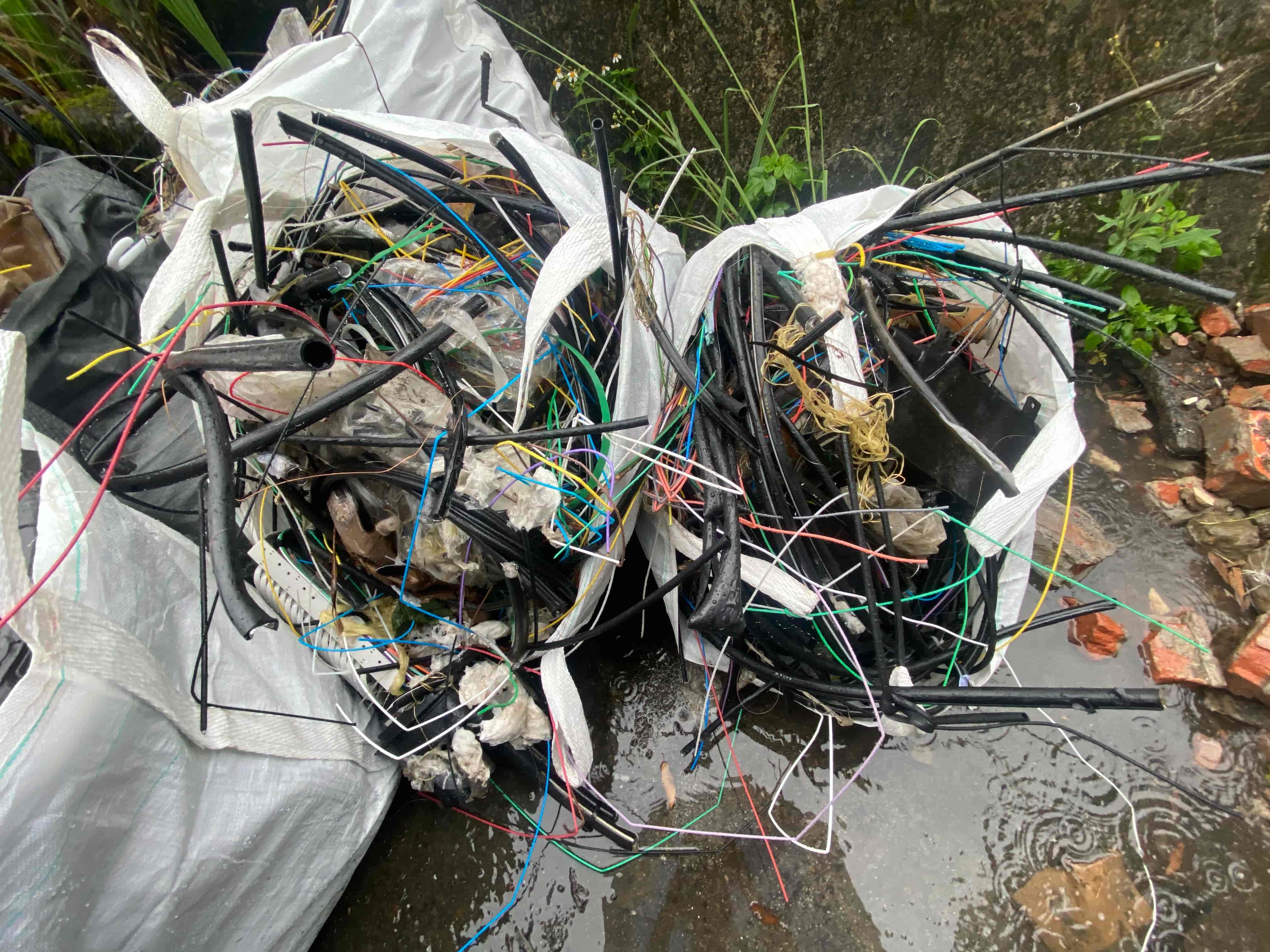 新竹分署烏來工作站人員於今(112)年2月間發現新北市烏來區德拉楠橋頭旁國有林地內遭人棄置500多公斤的廢棄電線材料,遂通知保七總隊第五大隊協助查緝,放置監控設備以及調閱沿線道路監視器追查犯嫌及犯案車輛,並於廢棄物中搜找跡證,發現某光纖纜線工程之施工通知單1張,依通知單上資訊循線追查到承攬工程的林姓業者,涉嫌未依廢棄物清理法控管及申報廢棄物流向,並將工程轉包給未具有廢棄物清理營運登記之吳姓業者處理,吳嫌則疑似圖地利之便,將施工後廢料隨意棄置於國有林班地內。