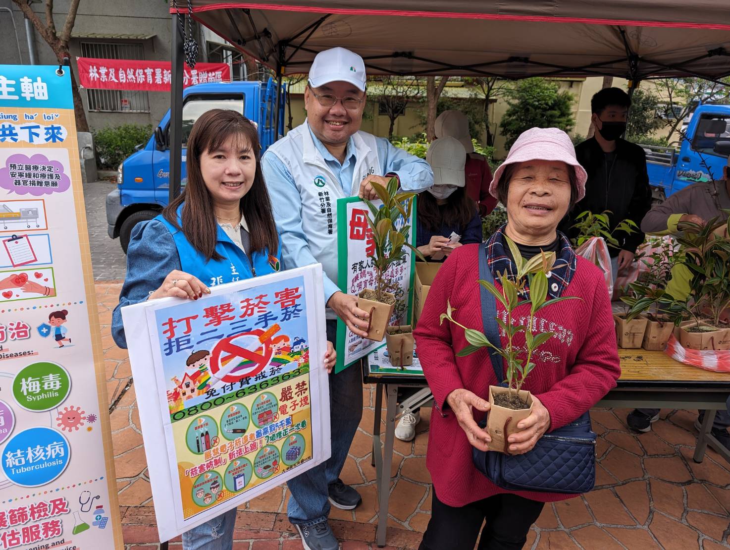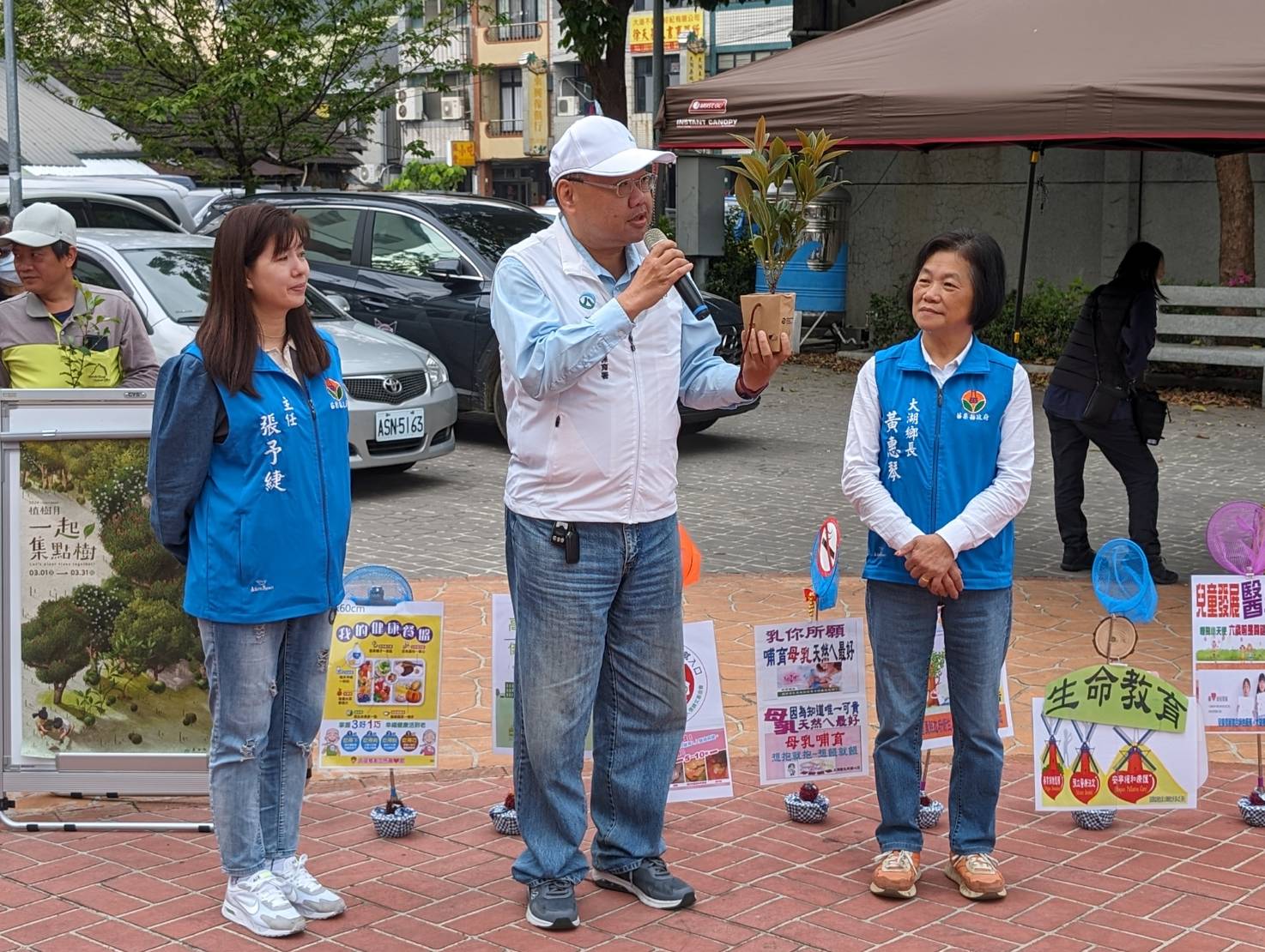 活動由大湖鄉黃惠琴鄉長、林業及自然保育署新竹分署大湖工作站譚運籌主任、大湖鄉衛生所張予緁主任共同開場,黃鄉長表示感謝新竹分署規劃贈苗活動,號召鄉親們響應綠化政策,為地球種下一份希望,讓我們多種樹、做環保,生活品質更美好。活動搭配大湖鄉衛生所創意衛教宣導,將預防保健議題融入民心,並且公開宣誓及簽署「健康生活公約」,希望透過公開支持與簽署活動,傳遞正確的健康宣言,營造大湖成為友善宜居幸福的鄉鎮。