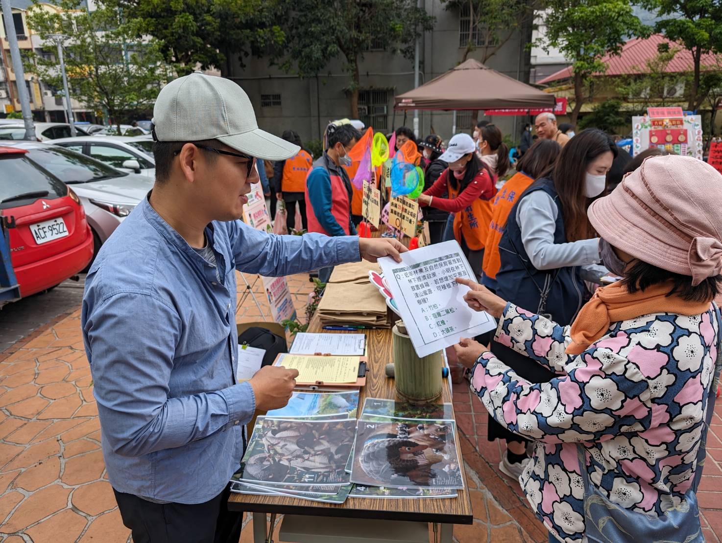 本次贈苗活動新竹分署提供烏來杜鵑、短柱山茶、臺灣野牡丹藤、山櫻花及金門赤楠等1,000株苗木,現場介紹及推廣臺灣原生植物,除了生性強健環境適應能力佳外,兼具觀花、觀葉或觀果價值,例如屬特有種的臺灣野牡丹藤,花序頂生且成串聚集,開花春夏季,果期秋季,環境適合及照顧得宜可終年開花不斷,且果實隨成熟度轉換不同顏色,極為特殊,現場民眾反應熱絡詢問度爆增。而裝填苗木容器為回收紙漿盆,無需脫盆與樹苗直接進行栽植可生物分解,提高種植效率與移植成活率外,也減少塑膠使用,達到減塑效果。新竹分署活動設計豐富,林業宣導攤位以防範森林火災及保育野生動物進行有奬徵答,利用今年奇幻之森月曆封面設計12道題目,依參與民眾的生日月份進行答題,透過現場解說與民眾互動,參與感提昇,宣導活動效果極佳,現場笑聲不斷。