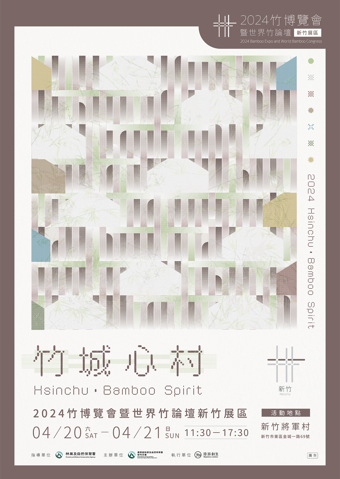 響應2024竹博覽會暨世界竹論壇在臺灣舉辦,林業及自然保育署新竹分署搭接新竹展區「竹的三次方」將於4月20、21日在將軍村(地址:新竹市東區金城一路69號)同步辦理「竹城新村」活動,現場有竹藝與自然媒材的職人主題市集、竹林經營特展、20場次手作DIY活動,還有竹樂器展演,一場限時的春季快閃竹藝聚落,將在以「竹」為名的新竹市展開,千萬別錯過!