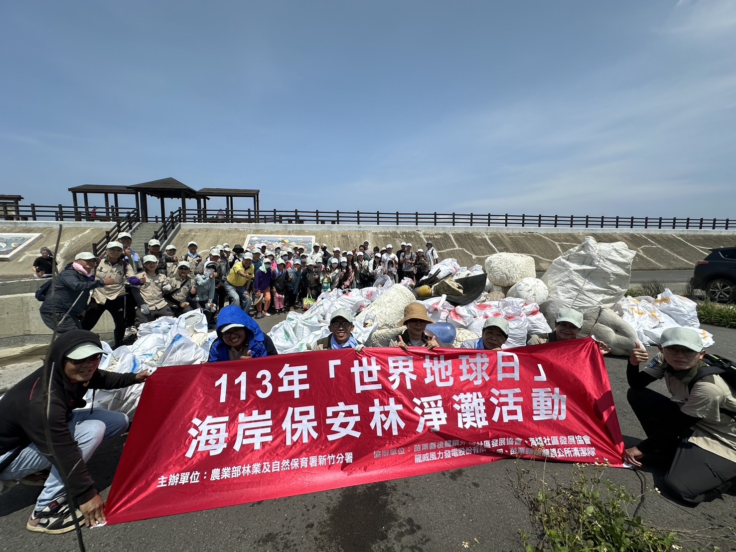 林業及自然保育署新竹分署為響應行政院「向海致敬」海岸環境維護政策,在「422世界地球日」前夕[今(20)日],在苗栗縣後龍鎮合興段編號1312海岸保安林與苗栗縣後龍鎮外埔社區發展協會、海埔社區發展協會及龍威風力發電股份有限公司合辦淨灘活動,邀請在地里民、企業夥伴踴躍參加共襄盛舉,以結合在地社區、企業的方式,一同辦理此次淨灘活動,大家攜手進行海岸環境清潔工作,以實際行動來展現愛護環境的精神。總計參與人數101人、總計清除廢棄物計250公斤,讓海岸保安林展現美麗潔淨的清新面貌。