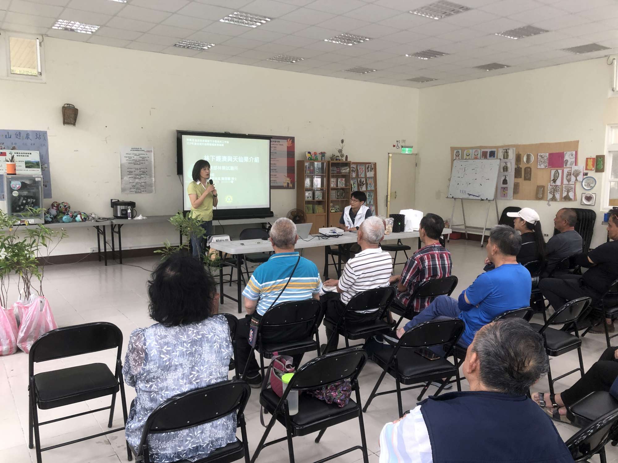 林業保育署新竹分署烏來工作站在烏來地區展開的推廣計畫,積極倡導以臺灣天仙果為核心的林下經濟發展計畫,期為烏來地區的部落居民開啟一條增益生計的新路徑,並從未被妥善利用的土地入手,協助當地各里部落有興趣的居民種植臺灣天仙果。為了讓部落居民更深入地了解臺灣天仙果的特性及栽植方法,工作站特別在今(20)日邀請了農業部林業試驗所的特聘研究員、臺灣天仙果專家陳芬蕙博士,以其專業的知識和豐富的經驗,在福山里民活動中心為部落居民進行一場精彩的講座與栽植示範。陳博士詳細講解臺灣天仙果的種植技術,包括種子培養和枝條扦插繁殖等過程的注意要項,也透過實務的示範和講解,讓部落居民對於臺灣天仙果的栽培密度、採收時間、採摘方式以及扦插繁殖有更深入的了解。