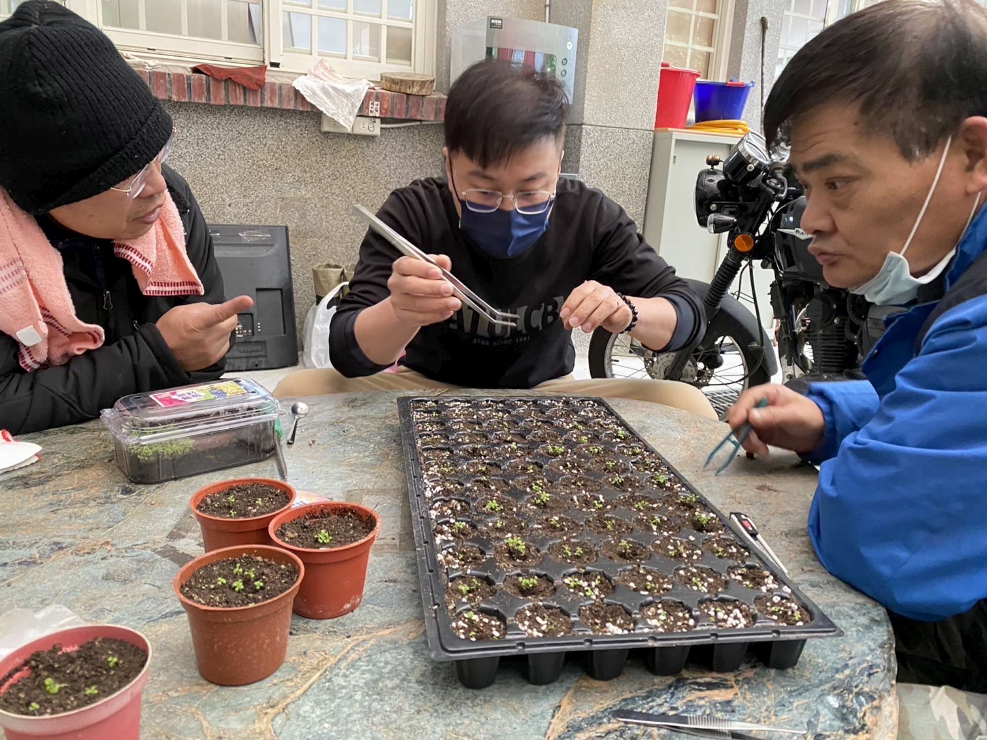 111年因自然災害之落石事件破壞了大葉火焰草族群的生長,許多植株遭掩埋或損毀。烏來工作站立即展開行動,搶救出仍具生命力的大葉火焰草植株,並進行復育。救回的植株在烏來工作站的細心養護下進行撫育和採種,之後將種子交由林業試驗所。楊正釧博士團隊在以專業知識和豐富經驗,將種子乾燥後密封儲藏在4度低溫,提高發芽率,並調整照養方式以克服種子微小,不易育苗的難題,待嫩芽長至1-2公釐,再交回烏來工作站繼續培育;大葉火焰草的種子細小、嫩莖細如髮絲,移植過程十分艱難。經過近二年的努力,復育工作取得了階段性成果。苗高已達12公分,適合返回原生育地復育。