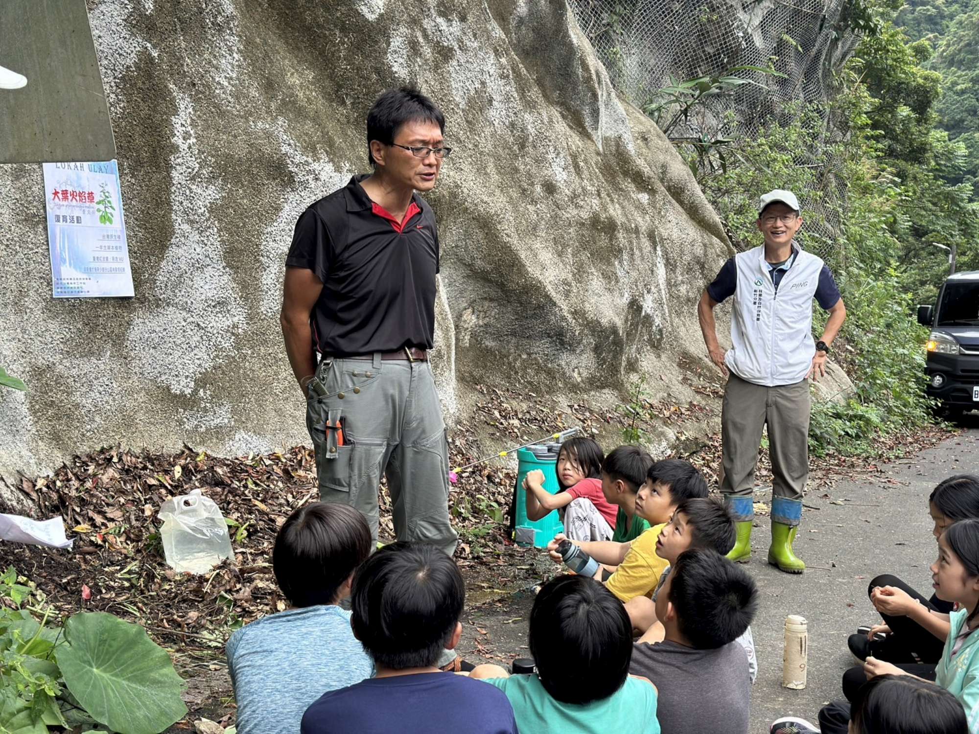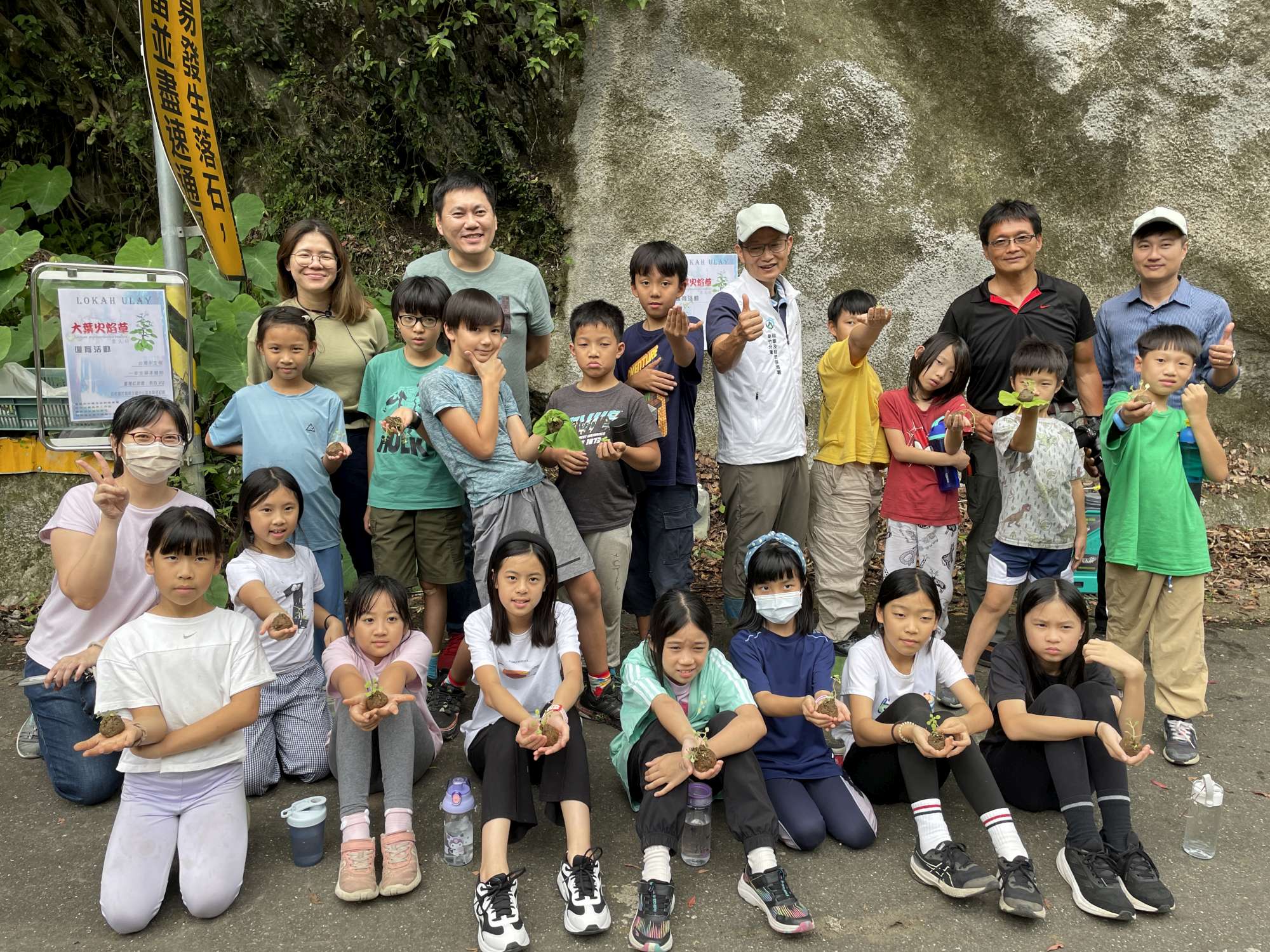 為了讓更多人認識大葉火焰草,並參與復育行動,烏來工作站趁著梅雨季節,特別邀請林業試驗所與信賢種籽親子實驗小學的師生,共同參與大葉火焰草的復育活動。學生們在活動中學習辨識大葉火焰草、了解其生育地特性、掌握種植方式,並透過親身體驗,對大葉火焰草有更深入的了解,也更加珍惜這份珍貴的自然生態。