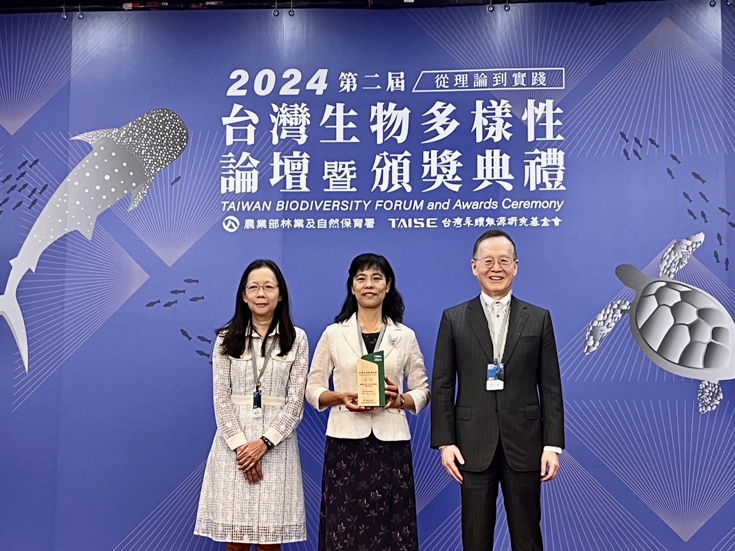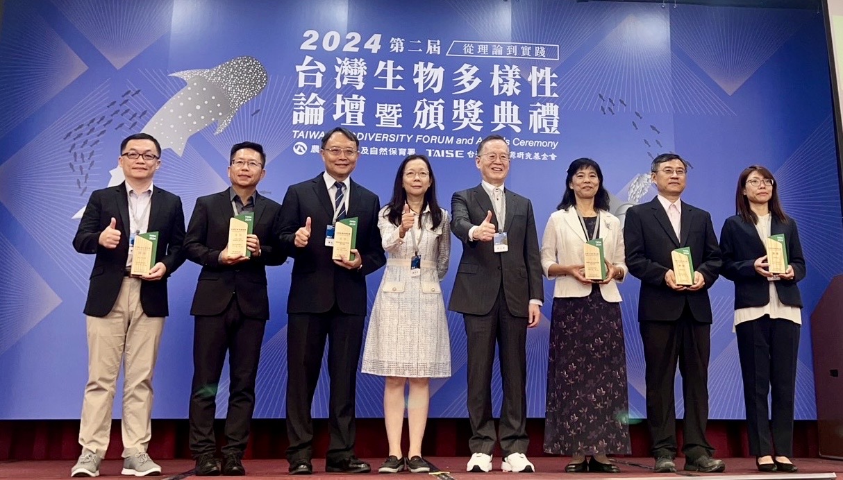 林業保育署新竹分署攜手林業試驗所致力推動受威脅植物保育復育工作,建置竹苗沿海淺山丘陵受威脅植物方舟的半天寮異地復育工作,推動生態環境教育及公私協力跨域合作,共創生物多樣性多元發展的卓越成果,榮獲2024「台灣生物多樣性獎」金獎殊榮。今(16)日林業保育署新竹分署由分署長夏榮生代表,從生物多樣性獎總召集人簡又新大使手中接下這份榮耀(Fig.1、Fig.2)。 夏榮生指出,在面對全球生物多樣性衰退的挑戰下,新竹分署自109年開始與林業試驗所協力合作,以國土資料為基礎進行受威脅植物棲地風險評估,透過綜合空間規劃,逐筆、對地篩選排定保育優先序位,藉由重點聚焦、研擬策略、實際行動,建立竹苗沿海丘陵受威脅植物的野外異地復育區。透過保存種原,減少原棲地採集壓力;以專業採集、育苗繁殖,減低珍貴種原的耗損,並將後代個體及種子再引回原生棲地,增加野生族群的數量。例如被學者評估為國家極危等級的漏盧,曾一度被認為可能已經在野外滅絕, 直到2008年消失70年才在苗栗通霄再度被發現;但已知的野生族群僅存兩處,其中一處族群生育地更面臨既定的土地開發工程…。2022年透過中央、地方機關與團隊跨域合作,展開緊急救援行動,採集了完整的漏盧植株進行異地復育;這些漏盧母株適應良好且開花結實,所採集的種子經過播種後,成功繁殖出新一代苗木,並已引回栽植於原棲地周邊(Fig.3);而歷經兩年,第二代的漏盧在野外已開花結實,展現最自在的優雅姿態。 新竹分署在面臨高度人為干擾及土地利用變化挑戰的淺山丘陵,跨單位整合資源,以專業知識為基礎,透過實務技術工作,成功收集竹苗沿海淺山受威脅植物的種原超過36種(占比83.72%),並已進行30種異地復育,除了漏盧,同列為臺灣維管束植物紅皮書名錄受威脅名單中的臺灣破傘菊、庭梅及高氏柴胡與新竹油菊也都成功復育並逐步擴種至自然野地。這些努力深受評審肯定,並被評價為「非常具有前瞻性的措施;不易執行,貢獻非常具體」。 夏榮生表示「我們不僅僅是在保護物種,更是在保護整個生態系統的穩定性和可持續性。」,藉由這些努力,不單提高了受威脅植物的族群數量,還為未來的野外復育工作奠定了堅固的基石。在此基礎下,新竹分署透過保種、景觀營造與教育多管齊下,迄今已與超過10個在地政府機關、學校、非政府組織團體及社區合作,栽植超過5,000多株,達21種受威脅植物,共同推動異地復育營造。包括財團法人慈心有機農業發展基金會在福智月稱光明寺園區嘗試在清除大黍後,導入受脅植物打造的「野花園」;「田鱉田」在移除小花蔓澤蘭等外來種後,以貼近野地野放環境的方式復育淺山受脅植物;苗栗長期關心石虎的「山貓森林」頭屋環教基地,以及以在地農業推廣環境教育的「裡山塾」也都充分發揮棲地串聯與「保種於民」的多重價值。 新竹分署與林試所積極協力各單位建立照顧受威脅植物的能力,針對植物辨識、展示解說、採種、扦插繁殖、修剪、園區整理等技術提供課程,透過能力培育、經驗交流,達到協力經營與培力目標。而在校園及社區營造植物保育上,協力苗栗縣通霄鎮新埔國小建置珍稀植物保種園、打造生態課程,輔導新埔社區執行培育復育工作,以融入「在地保種惠益共享」概念。此外,為促進生物多樣性資源永續利用,並增加公眾對受脅植物關注,特將具有景觀營造潛力的物種如高氏柴胡、島田氏雞兒腸導入新竹市將軍村與台北市0km山物所戶外場域營造(Fig.4);針對植株匍匐生長,且能迅速拓殖並覆蓋裸露地特性的豆科植物「大胡枝子」,積極與苗栗農業改良場共同合作試驗,盼有機會也成為草生栽培的草種選擇之一(Fig.5)。 夏榮生強調,新竹分署透過受威脅植物異地復育行動,致力於激發在地、公眾對生物多樣性保護的關注和參與,「這些保育努力不僅在國內得到肯定,也為全球生物多樣性保育工作做出了示範和貢獻。」除接軌國際實踐保育生物多樣性、重視生物多樣性資源永續利用以及共享惠益,同時扣合聯合國永續發展多項目標(SDGs)。期待透過不懈的實際行動,發揮社會影響力,號召更多的夥伴加入守護生物多樣性的行列,落實生物多樣性主流化!