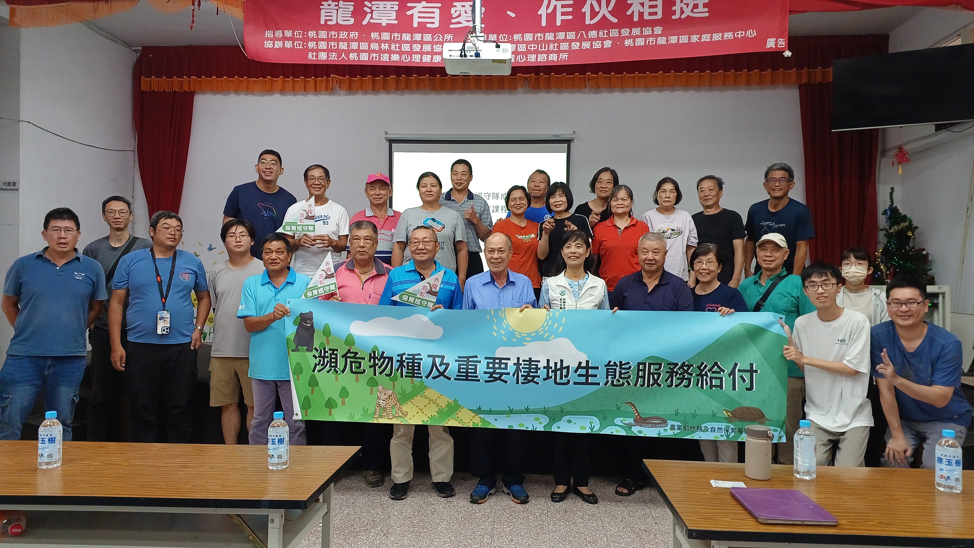 農業部112年11月15日核定赤腹游蛇生態服務給付示範計畫,並於今(113)年4月公告將赤腹游蛇由珍貴稀有提升為瀕臨絕種保育類野生動物。桃園市龍潭區八德社區發展協會在里長的帶領下,積極參與赤腹游蛇保育行動,成立保育巡守隊,進行赤腹游蛇重要分布棲地、違法設置籠具及人為干擾之巡守及通報工作。另有四位農友參與農地及埤塘維護工作,以友善耕作及營造生態棲地方式,維護赤腹游蛇生存之農田、草澤及埤塘等濕地環境。林業保育署新竹分署於本(113)年8月16日辦理赤腹游蛇生態保育課程及保育巡守隊成立儀式,由夏榮生分署長授證予協會代表及在地農友,感謝大家一同守護瀕危赤腹游蛇族群及生存棲地。 八德社區發展協會總幹事徐春淼里長表示,赤腹游蛇是在地珍貴的保育物種,保護赤腹游蛇同時是守護自己的家園,家園維護好才有更好的生活,因此協會成立保育巡守隊,由在地居民一起巡護赤腹游蛇重要棲地,巡護過程中也間接認識在地的生態資源,更加激發隊員守護赤腹游蛇棲地及在地環境的決心。此外,申請埤塘及農地維護之農友楊衍松先生及邱新火先生表示,他們是土生土長在地人,以前就曾看過赤腹游蛇,隨著當地工商業發展,近年已不易發現,但透過維護自家埤塘及農地等水域植生、水路暢通及友善耕作等方式,希望可以營造更多適合赤腹游蛇生存之棲地。 赤腹游蛇為臺灣原生半水棲蛇類,棲息於低海拔水田、草澤、埤塘及聯通周邊的渠道等環境,過去曾為常見且分布廣泛的蛇類,但因工商業快速發展、化學農藥使用及水汙染等,使棲地品質逐漸劣化甚至消失,族群量亦快速減少,目前已知的族群僅分布於臺北北投及桃園龍潭等地區。新竹分署於112年8月起委託臺灣爬行類動物保育協會於桃園龍潭地區進行赤腹游蛇族群調查及緊急移置等工作,目前共救援26隻個體,由臺北市立動物園協助收容照養中;新竹分署亦積極盤點勘查所轄國有林地、公有地及私人埤塘等,為赤腹游蛇後續野放及域外棲地營造進行全面向規劃。 新竹分署表示「赤腹游蛇生態服務給付示範計畫」包含「友善農地給付」及「巡護監測給付」兩部分。而「友善農地給付」再含括農地友善獎勵、農地營造獎勵、埤塘維護獎勵及埤塘營造獎勵共4項。「巡護監測給付」係由在地社區團體成立巡守隊,每月巡守及執行保育工作,每年最高核發6萬元獎勵金。夏榮生分署長表示,赤腹游蛇保育行動的推展,除了關注赤腹游蛇族群存續,同時也要顧及比鄰而居的農村聚落,鼓勵在地居民成為保育第一線,以友善方式管理農地及巡護重要物種棲息地,與政府一同守護赤腹游蛇。有關赤腹游蛇生態服務給付方案相關申請資格、執行方式等詳細內容,請查詢農業部林業及自然保育署自然保育網-瀕危物種及重要棲地生態服務給付推動方案。