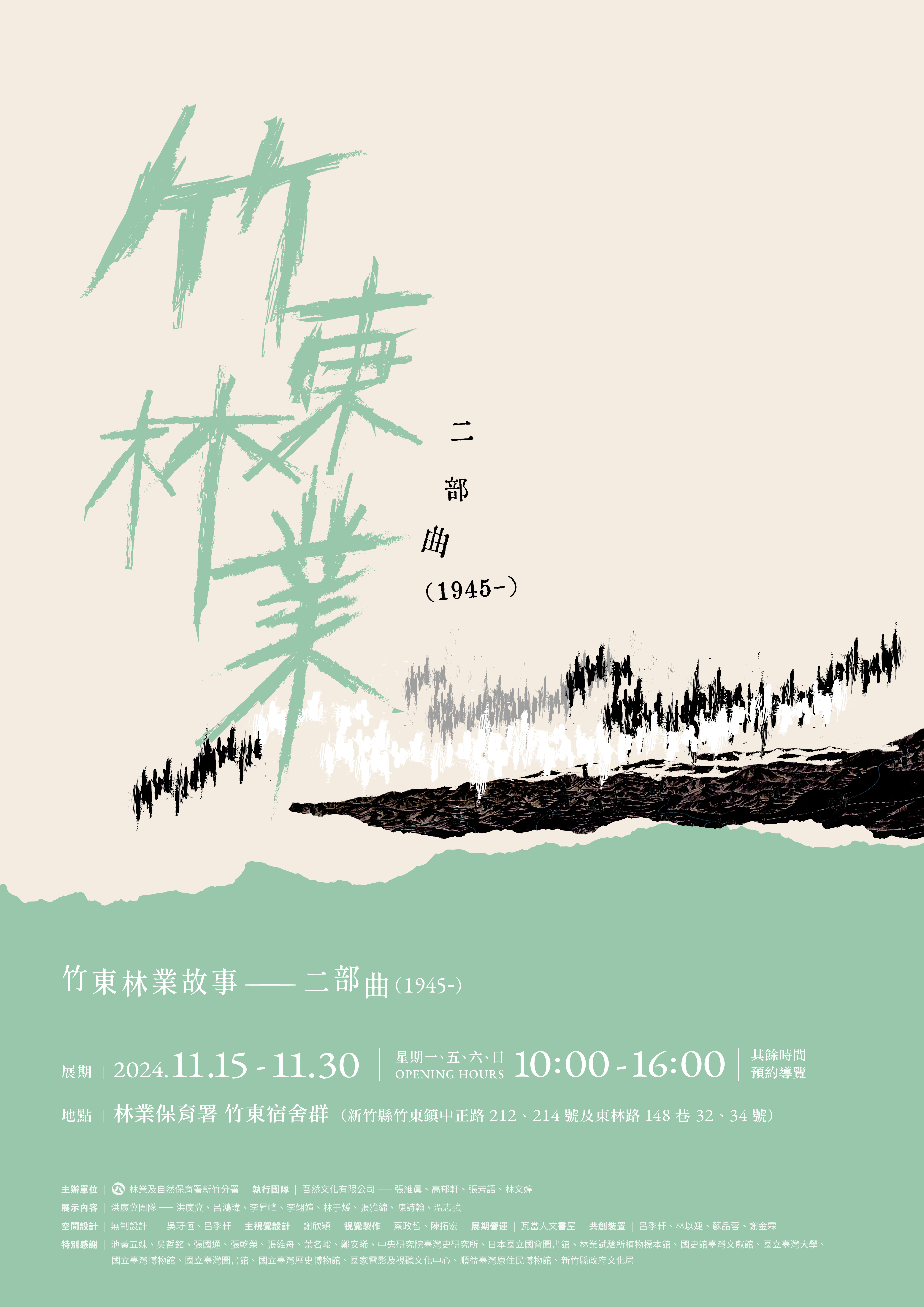 林業及自然保育署新竹分署為重構我國林業史,針對新竹分署退休職員與相關林業從業人員進行口述歷史訪談,紀錄竹東林場的黃金年代,也進一步完善我國林業政策的變遷史。訪談成果與相關史料照片透過展覽的轉化,成為「竹東林業故事特展」,自113年10月9日開始,在竹東鎮竹東宿舍群內開館展示,歡迎各界於展覽期間免費參觀。 「竹東林業故事特展」今(9)日開幕,邀請過去、現在林業從業人員、在地民眾在宿舍群庭院前共同彩繪與編織完成立體竹編作品,為風華重現的竹東宿舍群,點綴上繽紛的色彩與祝福,也象徵著這次展覽中各種多元史料相互交織所呈現出的竹東黃金年代。 新竹分署表示,林業政策的改變,對於林業經營過程中的造林、伐木、製材等林產業,以及相關從業人員影響尤深,而與所轄地區在地周遭居民日常更具有密切的互動關係,諸多過程都值得記錄並納入探討。因此,108年起委託國立臺灣大學洪廣冀教授團隊,對多位在竹東地區林業從業前輩及居民進行深入訪談,透過他們的口述證言,不僅看見竹東林業史料中的社群認知歧異,也留下更加多元的歷史記憶,利用史料及不同社群的口述證言,讓該地區的林業史樣貌更臻完善。 新竹縣竹東鎮曾為臺灣林業大鎮,近年修復完成的竹東宿舍群,過去是林業保育署老員工居住場所,更見證竹東林業的過往風光。本次特展場域擇選在竹東宿舍群,將建築與歷史記憶連結,以竹東林場為縮影,呈現臺灣近百年來竹東林業發展。展覽分為上、下兩檔,第一檔為「竹東林業故事(首部曲):1895~1945」於113年10月9日(三)開展,敘及竹東林場的前世今生,並從日本政府對此區域的治理出發,討論日本拓殖臺灣山林所形塑出的政策。緊接著第二檔「竹東林業故事(二部曲):1945~」將於同年11月15日(五)開展,從第二次世界大戰後,中華民國接收日本時代的林業機構為始,進一步闡述隨著國際政治經濟局勢變化,而制定的相關林業政策,不同於日本時代的開墾政策,而是朝向獲得永續再生資源的管理山林方式推進。 「竹東林業故事特展」展覽於113年10月9日(三)開展至同年11月30日(六)為止,展覽期間每周五、六、日、一上午10時至下午4時,在竹東鎮竹東宿舍群內(新竹縣竹東鎮中正路 212、214號及東林路 148巷 32、34 號)進行開館展示,並於每周二、三、四採團體預約導覽方式(預約導覽聯繫信箱:communityguiding2023@gmail.com),林業及自然保育署新竹分署誠摯邀請您一同參與竹東林業故事展,感受竹東深厚的林業底蘊及漫步竹東林場時光軌跡。