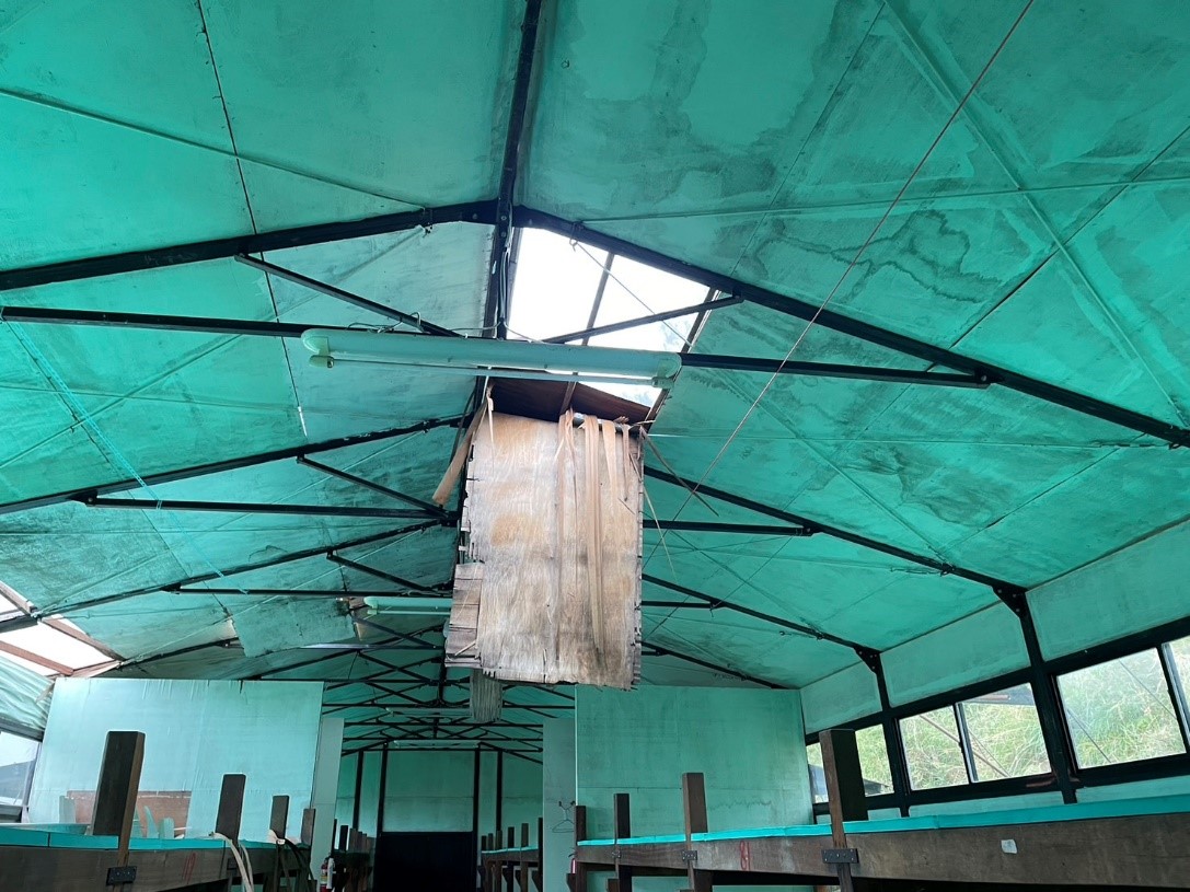 因康芮颱風影響,林業保育署新竹分署所屬九九山莊龍門二及龍門三客棧屋頂破損,為維山友安全,維修期間,暫停住宿開放至11月18日,提醒遊客維修期間,請勿進入九九山莊。