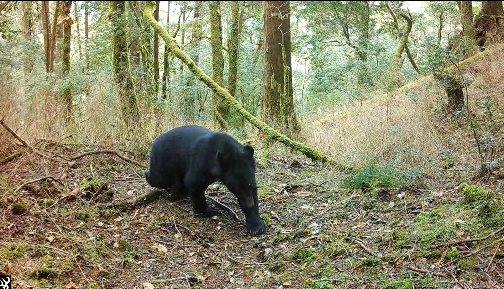 近年來,黑熊目擊通報事件時有所聞,113年年末的12月31日,林業及自然保育署新竹分署收到部落民眾主動通報於觀霧山區的溪谷處發現黑熊活動。經查出現點自然環境,研判該處屬臺灣黑熊天然棲地,且週邊無部落,暫無侵擾或發生人熊衝突的疑慮,民眾主動通報提供的錄像猶如捎來山神的祝福,新竹分署除了感謝民眾的熱心通報,也向部落民眾宣導人熊遭遇正確應變模式,建立人與自然和諧共處的有熊森林。