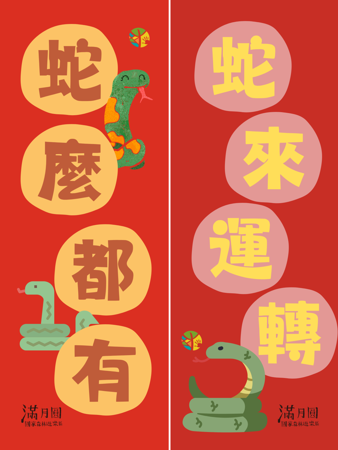 「福蛇記」活動自1月15日起至3月16日止,於滿月圓國家森林遊樂區遊客中心現場辦理【蛇麼攏賀LIVE】活動,完成【蛇麼攏賀】闖關卡或發揮想像進行森林手作蛇年創作任一指定任務,並於社群平台分享,即可兌換蛇年紀念貼紙。此外線上同時辦理【蛇來運轉ON LINE】網路活動,於指定貼文底下分享在滿月圓與【蛇】相關之合照,完成任務就有機會抽滿月圓限量精美好禮。