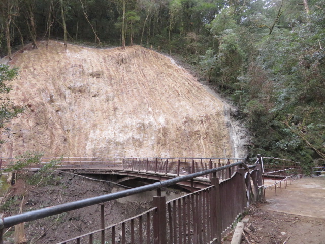 眺望之橋位處園區步道0.6K,為區內巨木步道必經之路線,受康芮颱風風災影響,步道邊坡崩塌伴隨倒伏的高大林木重壓眺望之橋,致橋體結構受損。經專家學者現勘後認有安全考量,新竹分署隨即投入搶修復建,移除倒木並進行邊坡治理。惟眺望之橋經結構安全檢查後,評估需較長時間修復,故先修整便橋連接前後步道。1月25日將全面開放通行,而之前暫時封閉的19號巨木路段,也已由分署國家步道維護志工修復完成,完備全區步道串接。