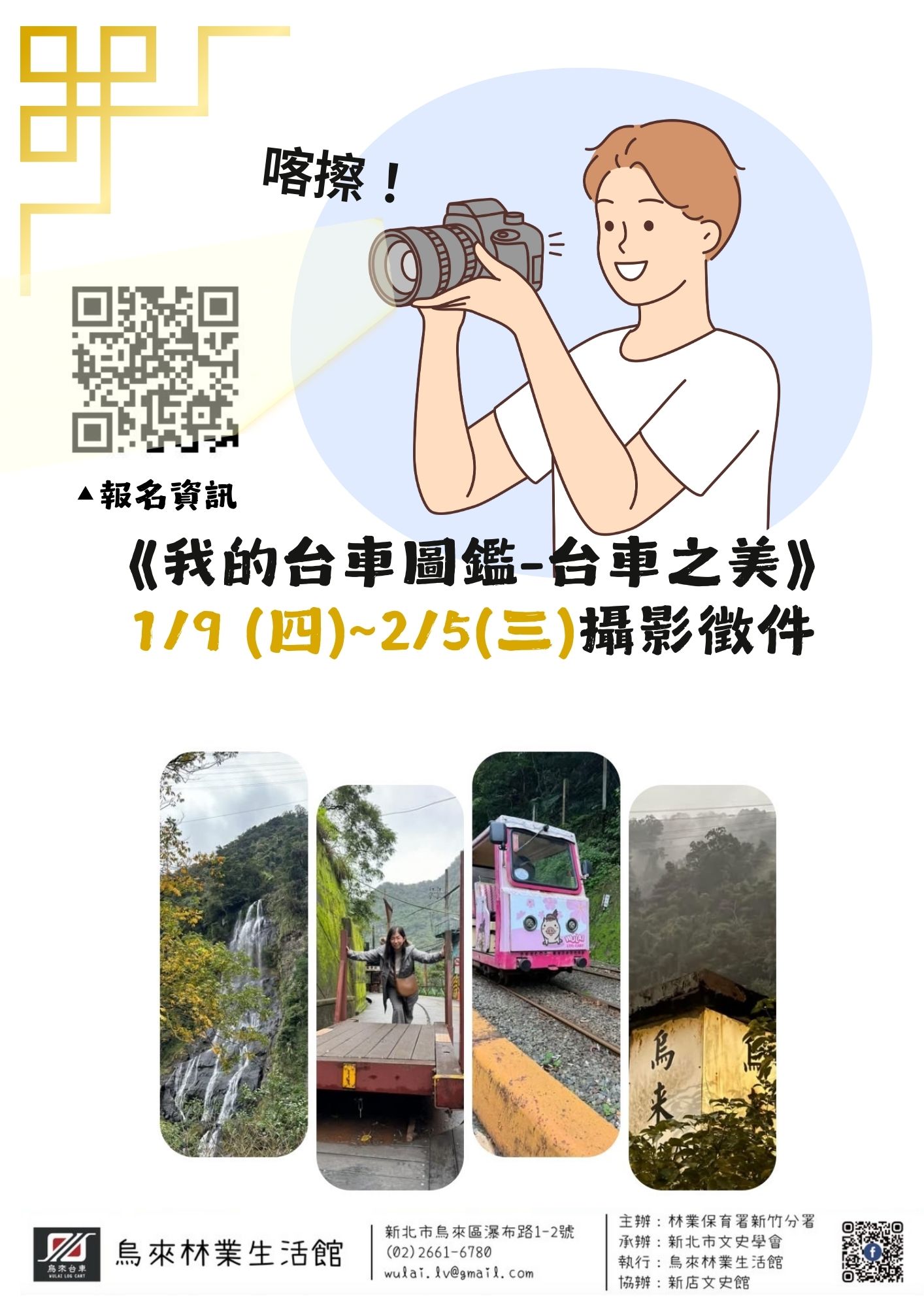 活動簡章網站連結https://forms.gle/xutvvWsGE2pgFsYb9;詳情請洽烏來林業生活館02-2661-6780(週二休館),或上『台車清遊-烏來林業生活館』粉絲專頁:http://ppt.cc/rxW6。