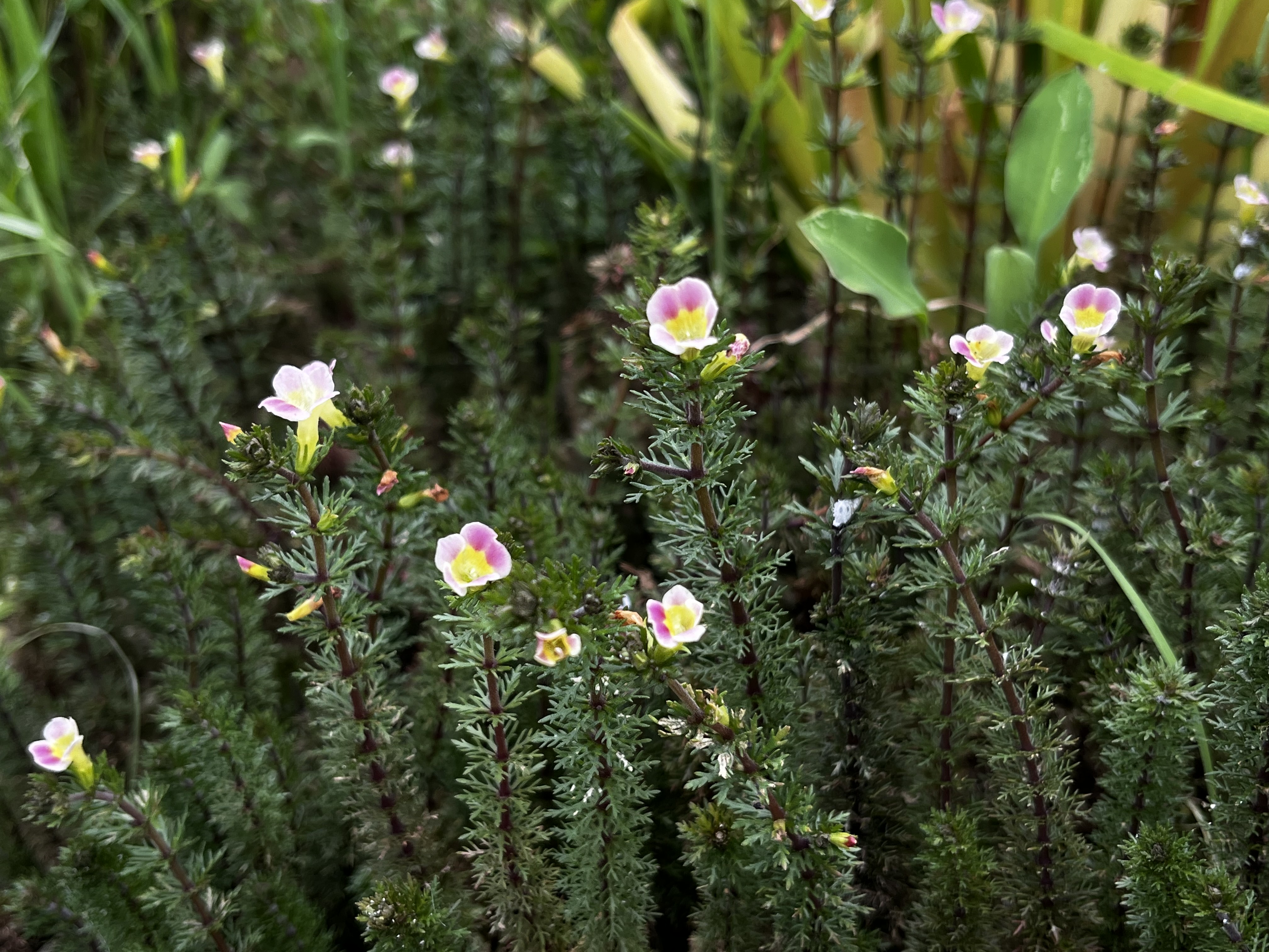 「桃園石龍尾」為臺灣特有的稀有水生植物,主要生長於桃園臺地的埤塘及濕地環境。此植物具有纖細的莖葉與獨特的小型粉紅色花朵,適應淺水或濕潤泥地。早年於八德、龍潭一帶曾有紀錄,近年來桃園地區水域環境變遷及開發等因素,導致棲地大幅消失,甚至在部分區域已瀕臨滅絕。「桃園石龍尾」是濕地生態系統重要指標物種,其存續與當地生物多樣性息息相關,復育工作刻不容緩。本次合作除了利用埤塘具蓄水的功能直接維護桃園石龍尾族群以外,新竹分署攜手荒野保護協會桃園分會,持續推動公眾參與活動、棲地營造等事項,希望從埤塘相關管理工作中種下生物多樣性保育的種子。