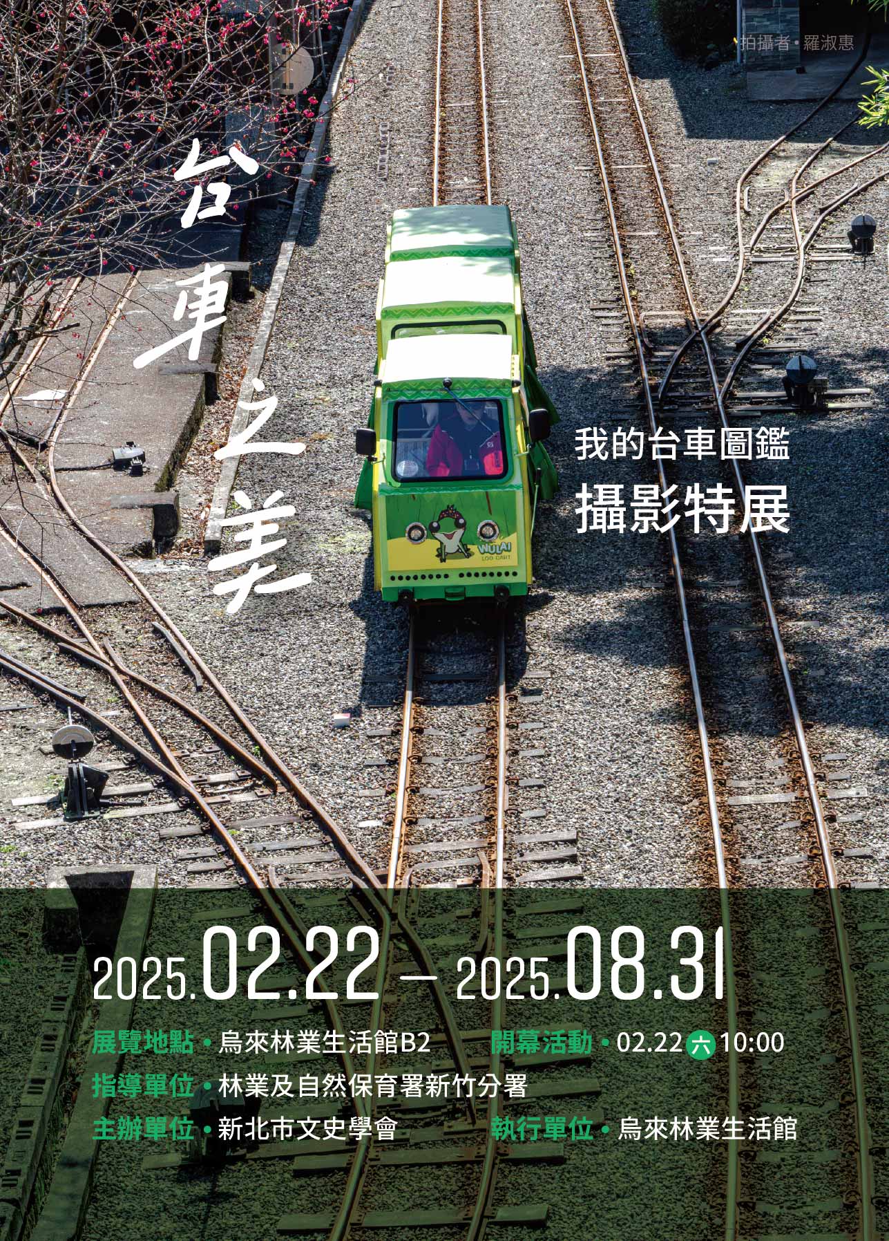 林業及自然保育署新竹分署烏來林業生活館舉辦「我的台車圖鑑:台車之美」攝影徵件,歷時近一個月,吸引眾多攝影愛好者一同參與。此次徵選收到五十多件優秀作品,經由專業評審團隊,最終評選出首獎一名、優選二名、佳作三名及入選十名共計16件攝影作品公開展覽。並訂2月22日(週六)上午10點舉辦攝影特展開幕式及導覽活動,獲獎名單將於官方網站公布,歡迎民眾一同前往欣賞台車之美。