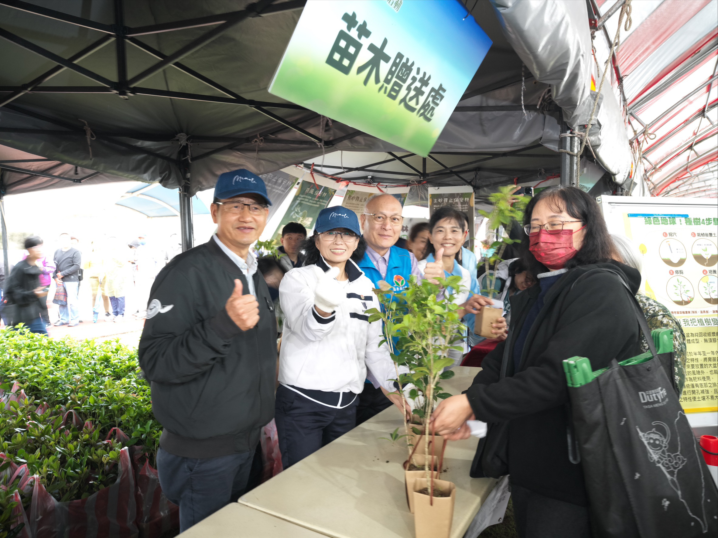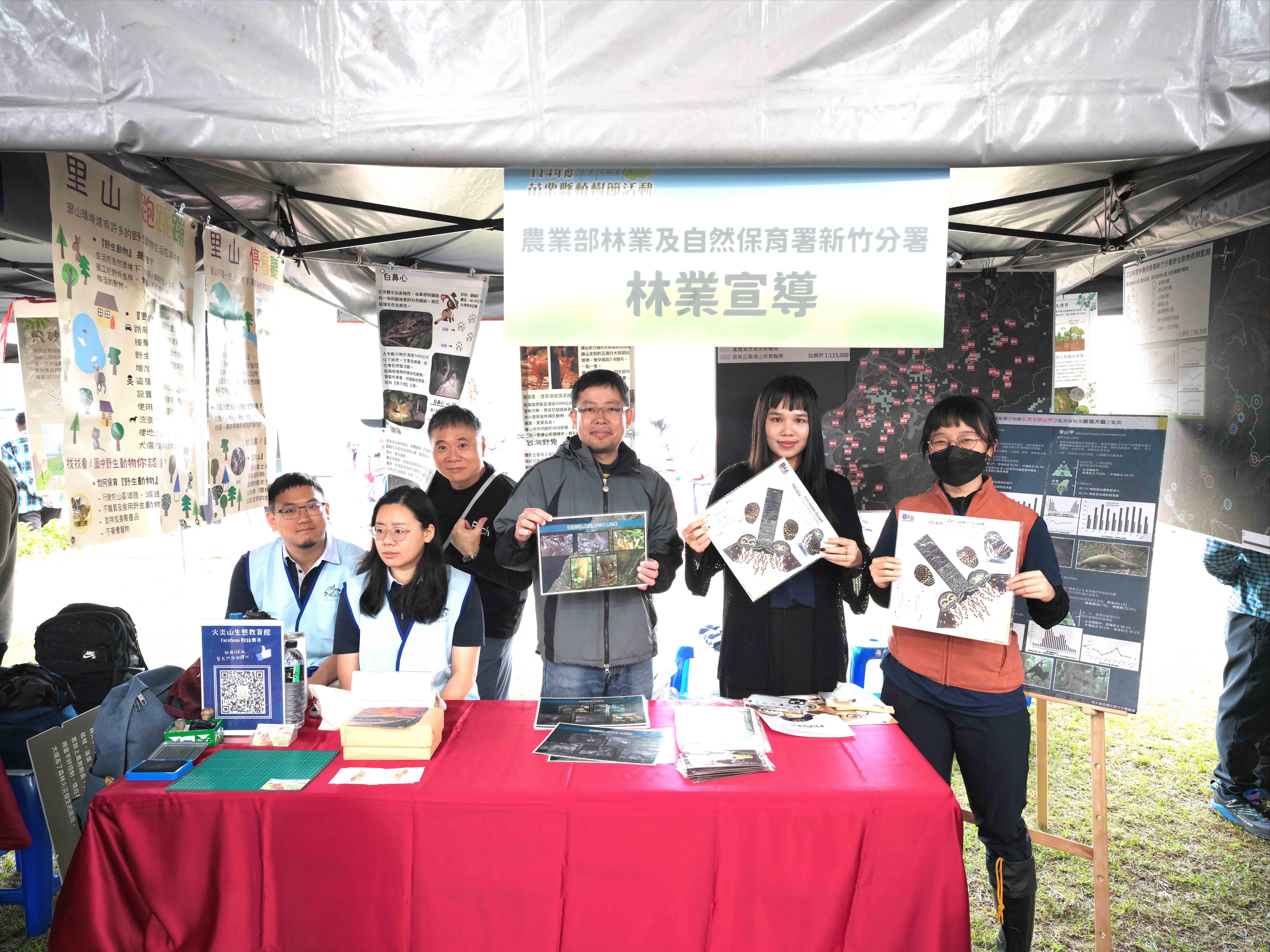 新竹分署與苗栗縣政府在現場送出短柱山茶、桂花、烏來杜鵑、厚葉石斑木、田代氏石斑木、野牡丹等共2,000株原生苗木,有蜜源、有景觀、有綠籬、有在地特色,都是適合居家周邊栽植的苗木,鄉親索贈相當踴躍。現場多元活動的宣導攤位,包含保林防火、保安林與生活、淺山動物監測成效及保育觀念宣導、生態友善工程與廉政法令教育推廣,藉由簡明的看板說明,活潑有趣的的互動遊戲,民眾可以瞭解各項森林永續作為與重要性;而現場設置的「廉政推推樂」、「廉政拼拼樂」及「廉政填填看」小遊戲,讓民眾獲知政府廉政透明化及法制規範建立的重要性,參與的民眾藉由解說,完成拼圖及將推杯或拼板填入正確空格內,達到廉政觀念之推廣。