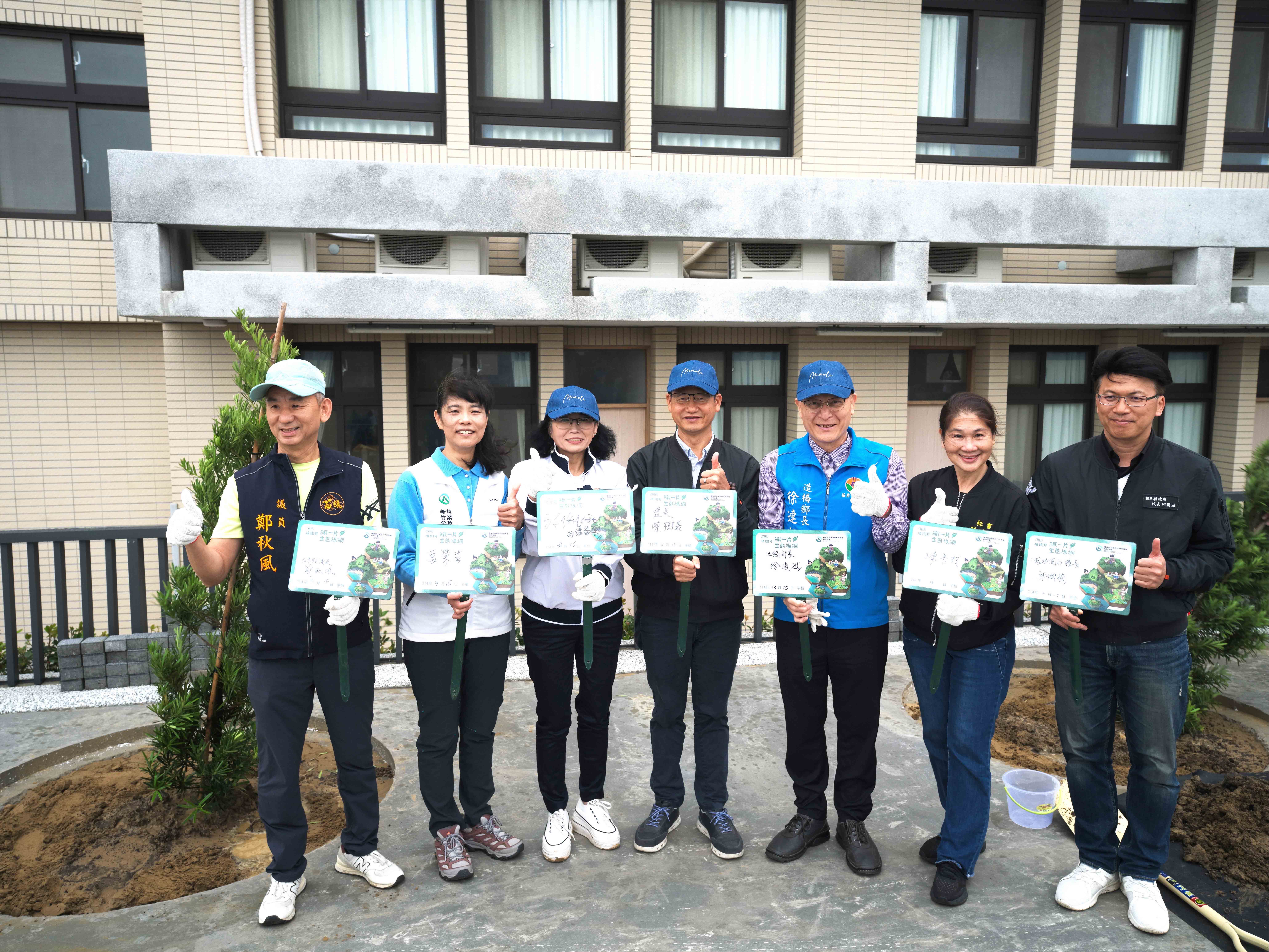 今(15)林業及自然保育署新竹分署與苗栗縣政府合作,響應植樹月共同「織一片生態綠網」,由新竹分署長夏榮生、苗栗縣副縣長邱俐俐、苗栗縣後龍鎮長謝清輝、議會代表等,於後龍鎮成功國民小學校園內與師生共同種下蘭嶼羅漢松、厚葉石斑木及圓葉土樟等台灣原生植物,除美化校園環境與景觀,種下的植栽也將與成功國小師生共同成長茁壯。