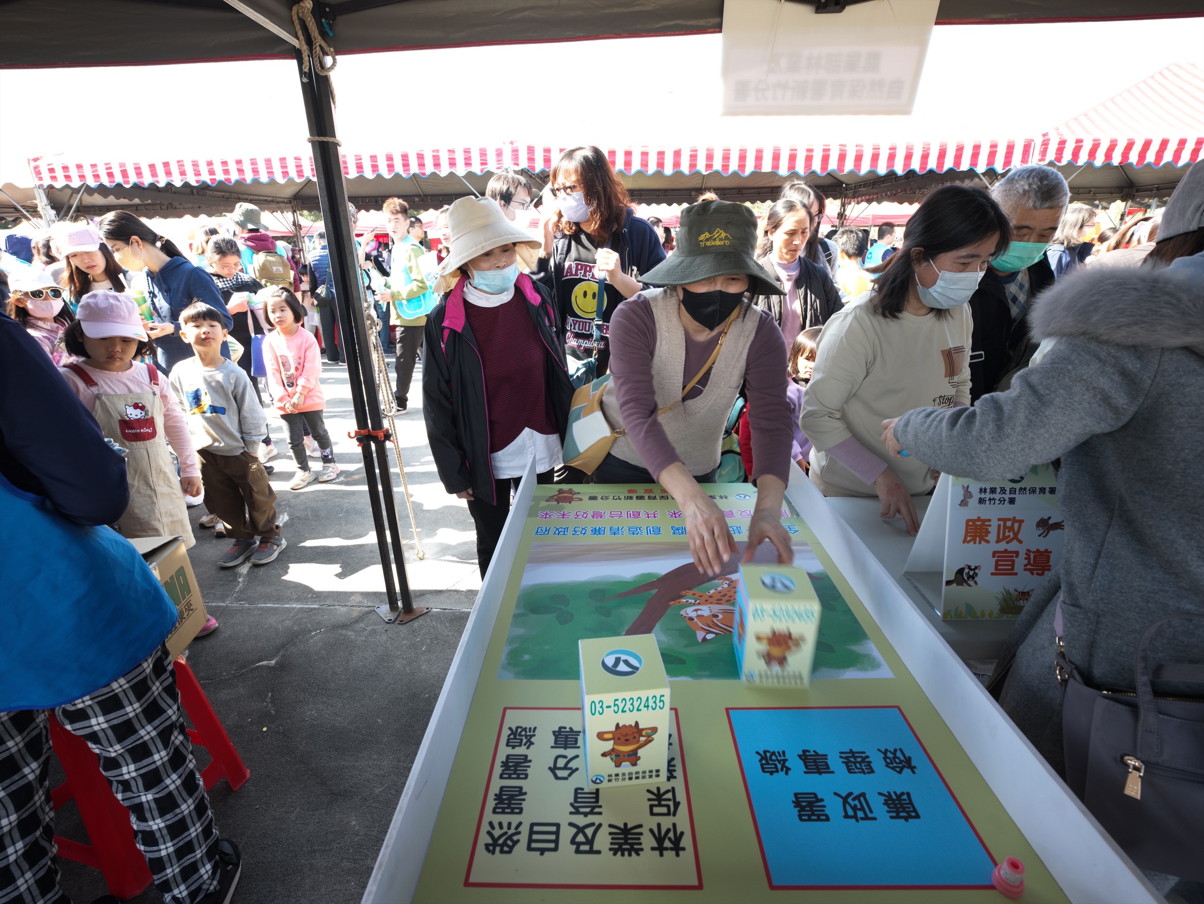 新竹分署與新竹縣政府在活動現場發放2000株原生苗木,包括月橘、萊特氏越橘、忍冬等6種,以及1000株園藝樹種如熊貓仙丹、矮仙丹等,這些苗木兼具蜜源、景觀、綠籬與在地特色,適合居家周邊栽植,鄉親領取熱情高漲。現場設有多樣宣導攤位,涵蓋保林防火、淺山動物監測成效與保育觀念、生態友善工程及廉政法令教育等主題,透過簡明看板與活潑有趣的互動遊戲,讓民眾了解森林永續作為的重要性。此外,活動設置「廉政推推樂」、「廉政拼拼樂」及「廉政填填看」等小遊戲,參與者在解說引導下,完成拼圖或將推杯、拼板填入正確空格,進一步認識政府廉政透明化及法制規範建立的意義,寓教於樂地推廣廉政觀念。