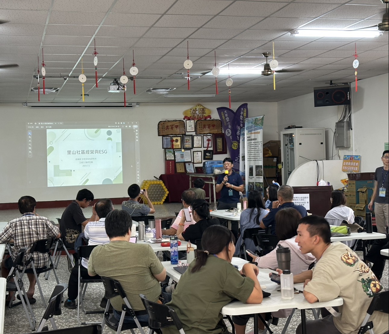 為推動新竹分署轄區內生態服務給付政策及里山社區參與龜類保育,今日課程內容結合生態專業、政策推廣與社區經營,全面提升地方對生態服務給付機制的理解並厚實臺灣里山倡議夥伴關係網路及社區林業網路據點的經營知能。上午課程由農業部生物多樣性研究所龔峰榆助理研究員分享「龜類與兩棲爬行動物生態及保育」專題,深入解析臺灣龜類現況與保育挑戰,並進行「龜類生態服務給付說明」,促進與會社區對生態服務給付機制的認識與理解。下午課程則由林湧倫老師介紹「公民科學與iNaturalist」,鼓勵社區以公民科學參與生態調查;王經文副研究員分享「里山社區經營與ESG」,從環境、社會與治理三構面,引導社區從永續經營的角度思考生態保育與生計共榮的可能性。