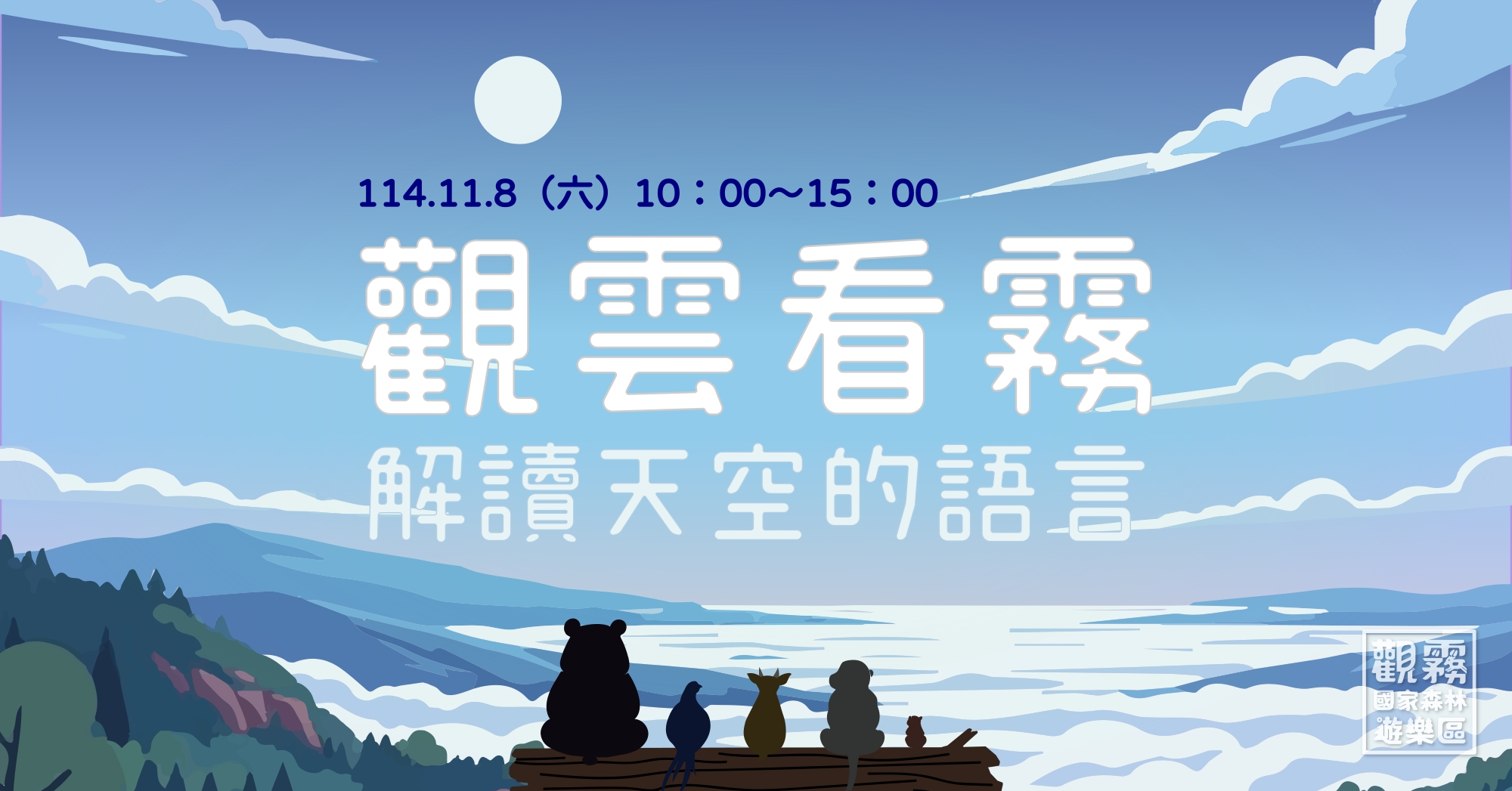 活動將於 11 月 8 日(六)上午 10 時至下午 3 時在觀霧國家森林遊樂區舉行,由「阿霞天空」創辦人——莊鎮豪老師主講。課程內容涵蓋雲霧的形成原理與山區特有的天氣現象,並透過小型實驗幫助學員直觀理解大氣運作,之後再前往園區觀察點,依當日天氣條件,有機會親眼目睹雲海湧動、霧氣翻騰或午後對流雨等自然景象,在現場講解中感受雲霧的奧妙
