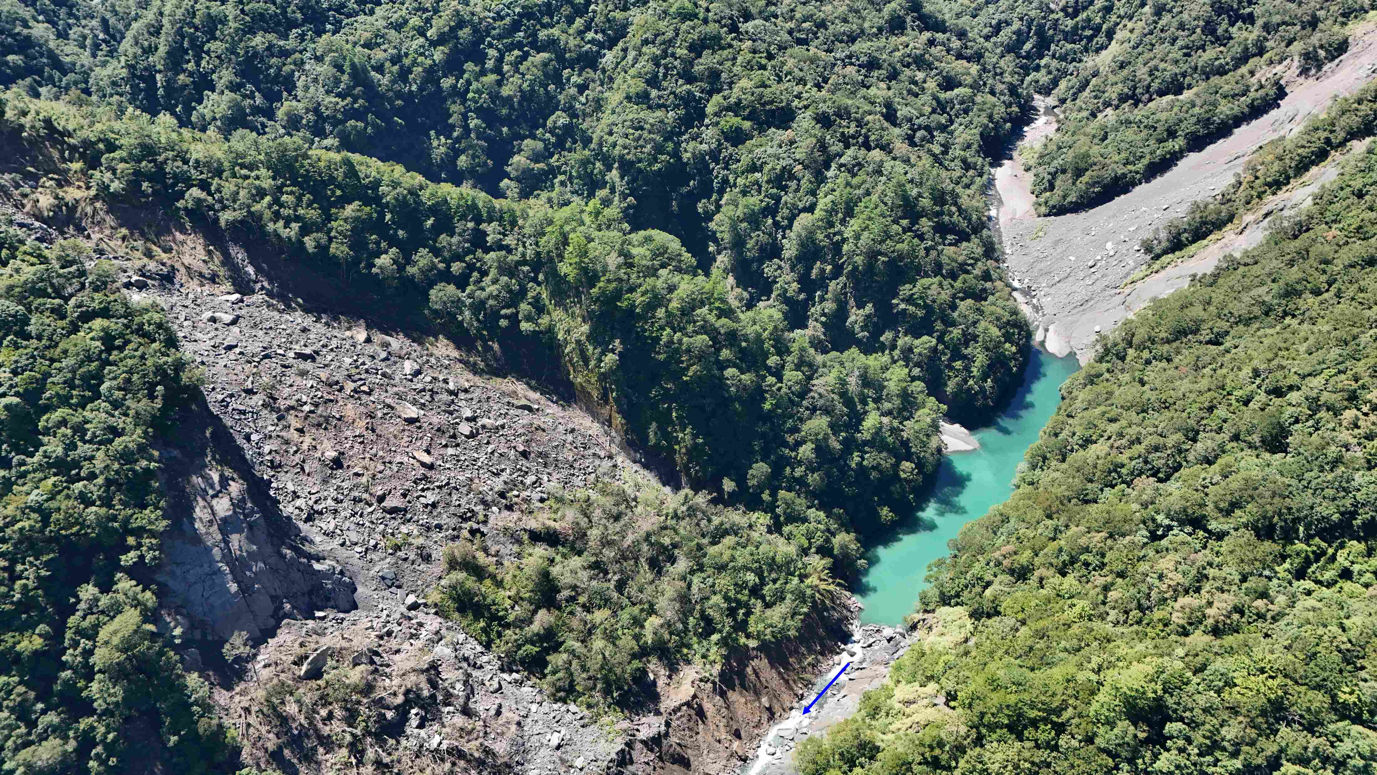 近期引起媒體關注的新竹縣尖石鄉泰崗溪堰塞湖,林業保育署新竹分署於今(3)日再次前往現場執行無人機空拍任務,堰塞湖無明顯變化,並持續穩定溢流中,經專業團隊及專家評估暫無安全疑慮。分署持續定期派員空拍及透過衛星影像監測湖體及周邊崩塌地變化作業。 新竹分署指出,泰崗溪堰塞湖係113年11月康芮颱風造成,堰塞湖壩高約10公尺,面積約1.3公頃,蓄水體積約4.8萬立方公尺,約20個標準游泳池水量,現場已自然溢流。該堰塞湖上游迴水範圍無保全對象,下游保全對象最近的司馬庫斯大橋(距離堰塞湖約10公里,離河底高約20公尺),泰崗溪溫泉(距離堰塞湖約14公里)。經估算如堰塞湖潰壩,河段水位會上升不到40公分,其對下游保全對象(聚落)安全不致造成影響。並請新竹縣政府將泰崗溪秀巒匯流處至堰塞湖間之河段,公告為水域遊憩活動禁止區域範圍。 新竹分署表示,鑒於去年11月堰塞湖形成且地處偏遠,分署增加每月巡護頻度,若發現該處出現豪大雨或者湖體有變化,則會啟動空拍調查。相關監測結果亦將與新竹縣政府等單位保持密切聯繫,針對異常狀況將提前預警及通報,以維護民眾安全。