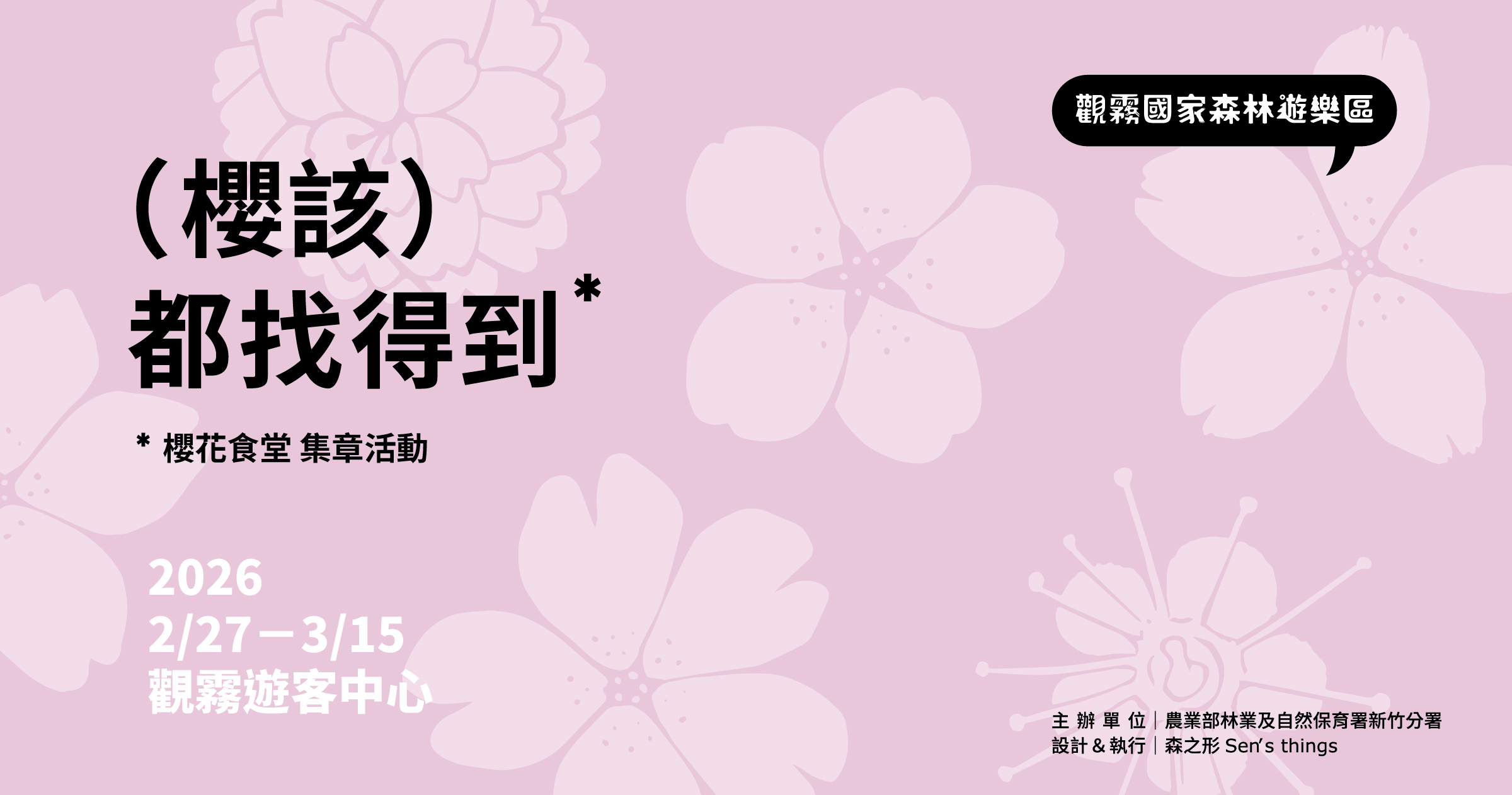 配合這場春日盛宴,林業及自然保育署新竹分署特別推出「(櫻該)都找得到——櫻花食堂」集章活動,自115年2月27日起至3月15日止,於觀霧遊客中心舉辦,邀請民眾走進觀霧遊客中心、化身生態觀察家,尋找那些正在櫻花樹間覓食的「森林食客」,盛開的櫻花,同時也是森林動物們一年一度的重要餐桌。